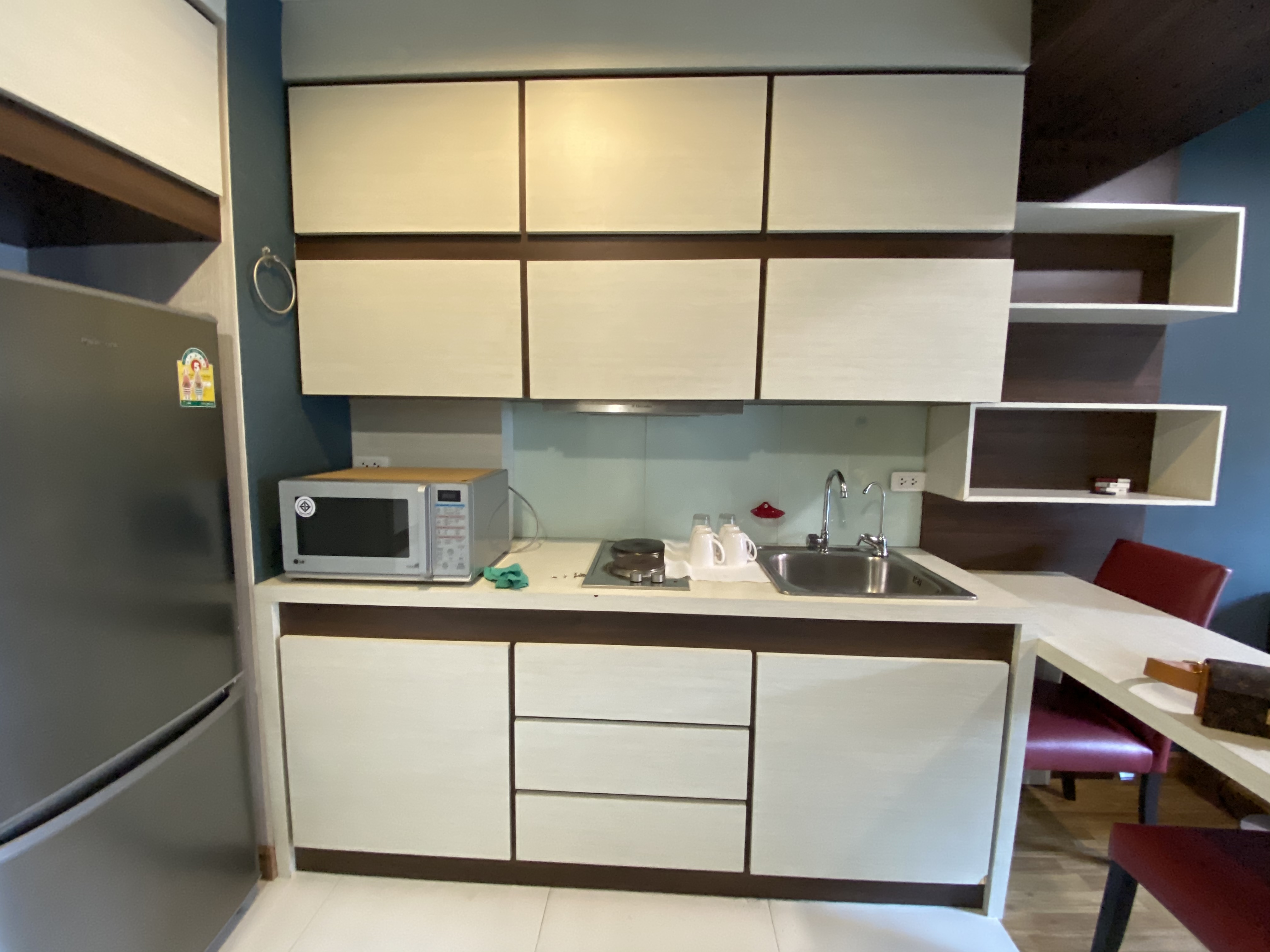 - มี 1 ห้องนอน 1 ห้องน้ำ ห้องรับแขก ครัวบิวท์อิน พร้อมเฟอร์นิเจอร์ทั้งหมด