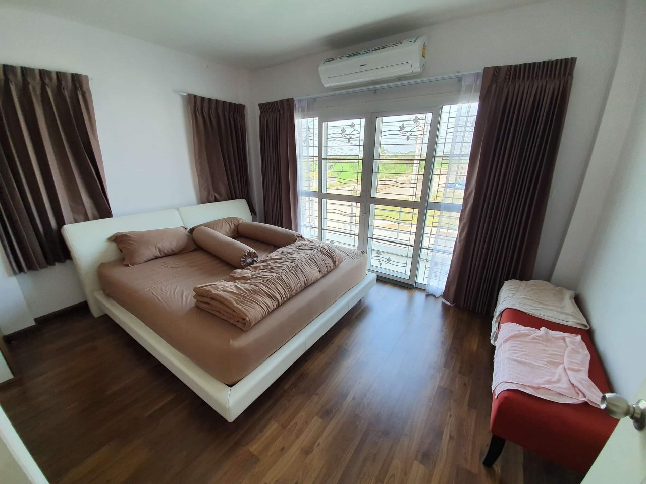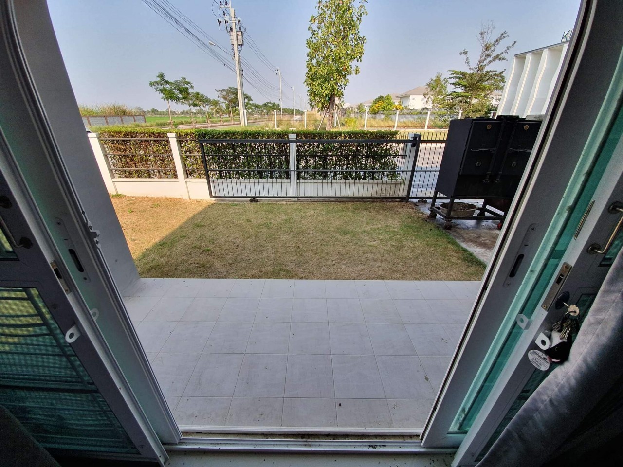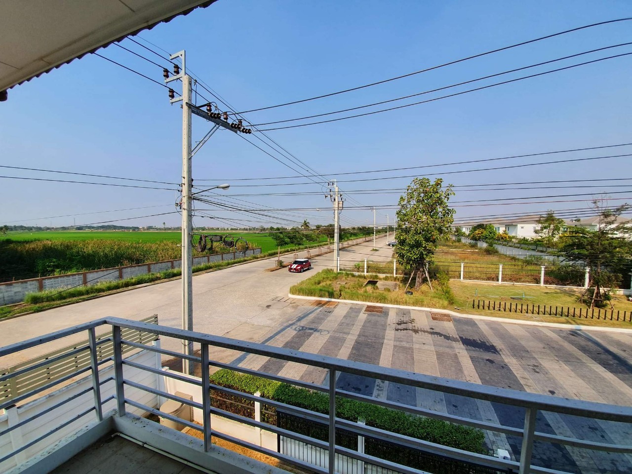 - วิวสวยมาก เป็นบ้านแฝดที่เปิดหน้าต่างมาแล้วไม่ต้องเจอบ้านตรงข้าม แต่เป็นวิวทุ่งนาสุดสายตาแทน ลมเย็นสบายสุดๆ มีแดดบ้างแต่ม่านกันได้หมดจึงไม่ร้อน ด้านข้างของบ้านติดถนนเมน และเป็นรั้วของ รพ บางบัวทอง ฉนั้นวางใจได้ว่าข้างบ้าน กับหน้าบ้าน จะไม่มีบ้านใหม่ขึ่นมาแน่นอน