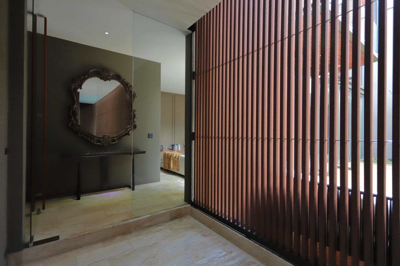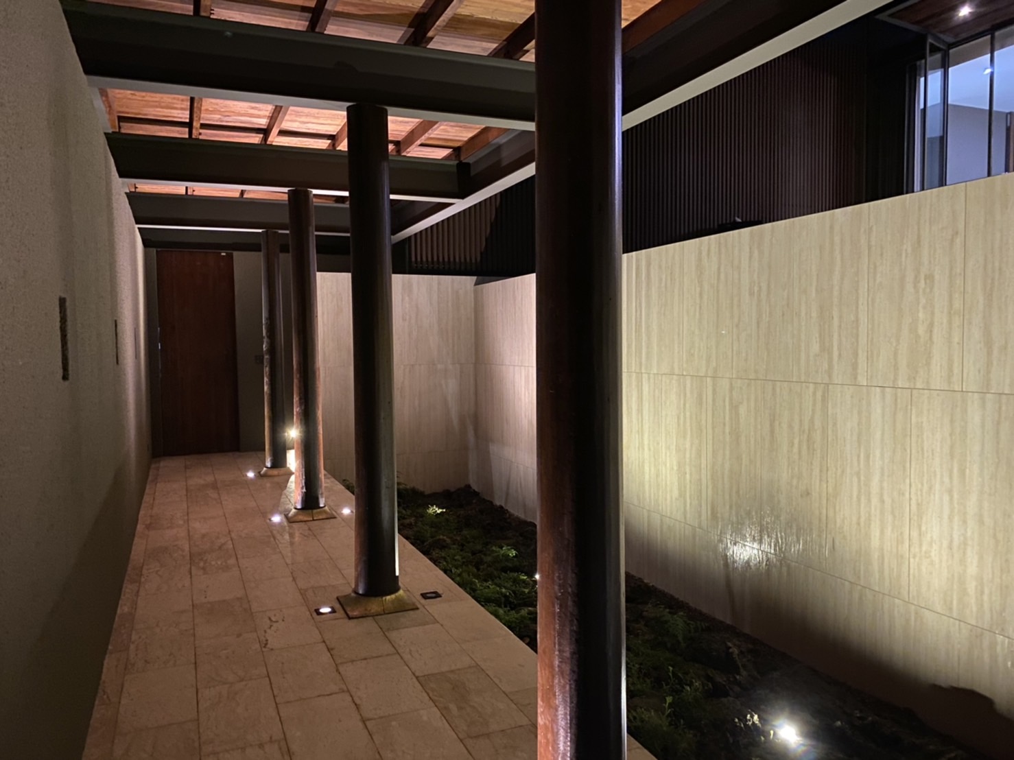 - บันไดและโถงทางเดินใช้ไม้แท้เนื้อแข็ง
