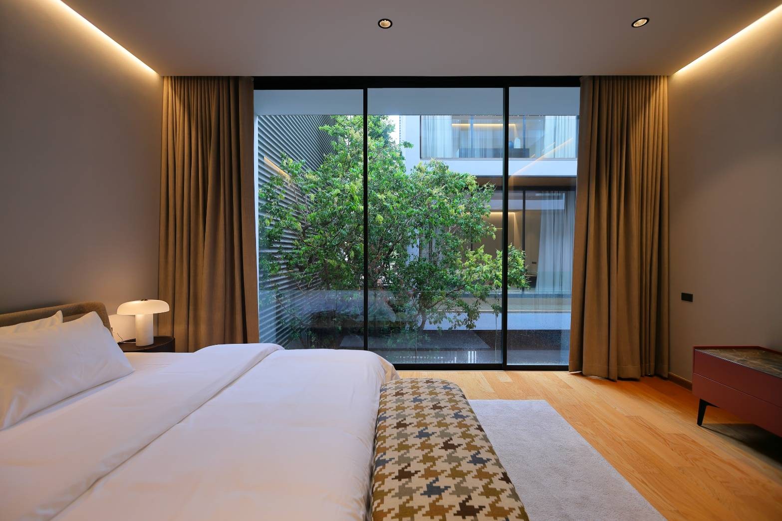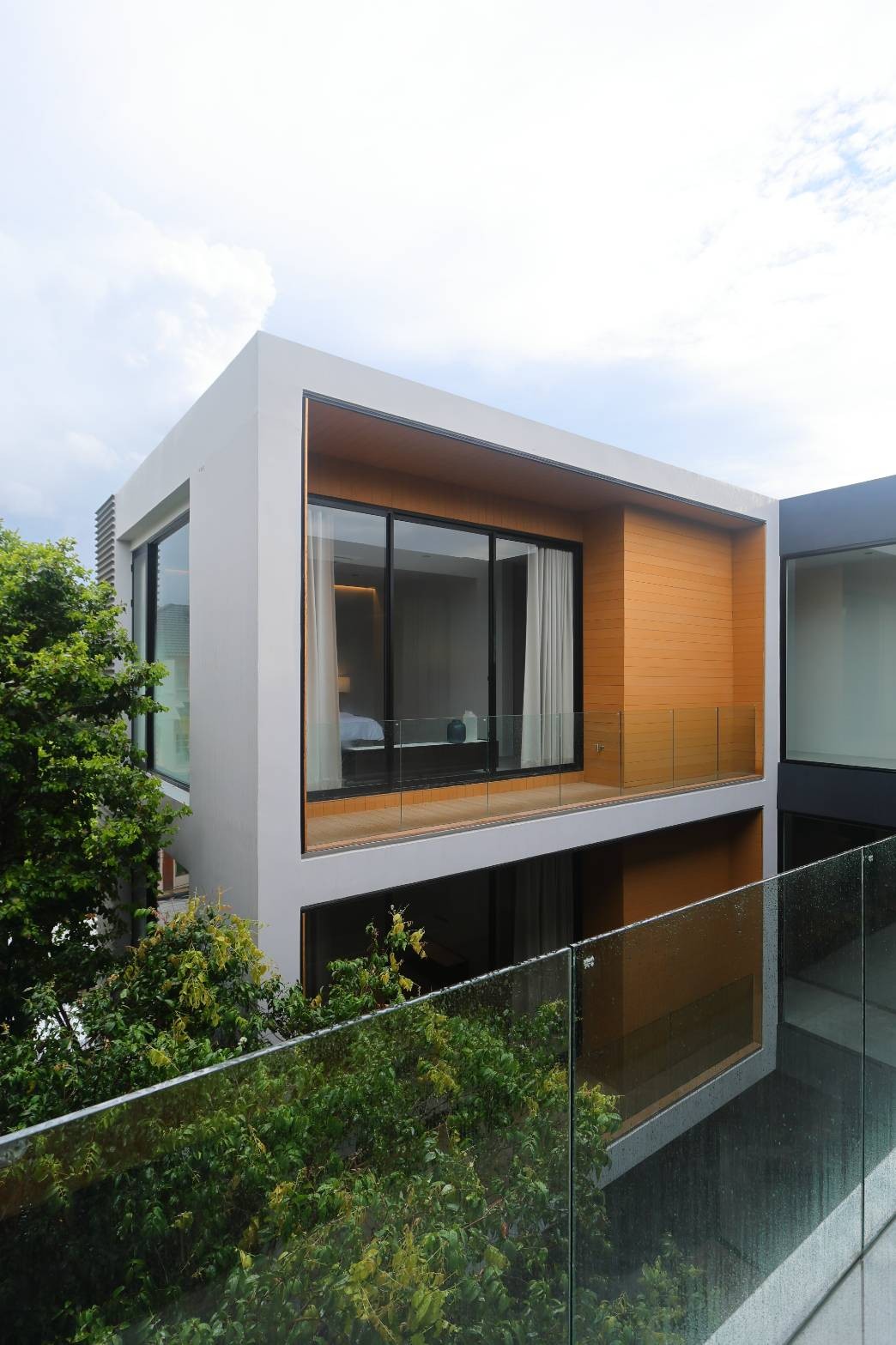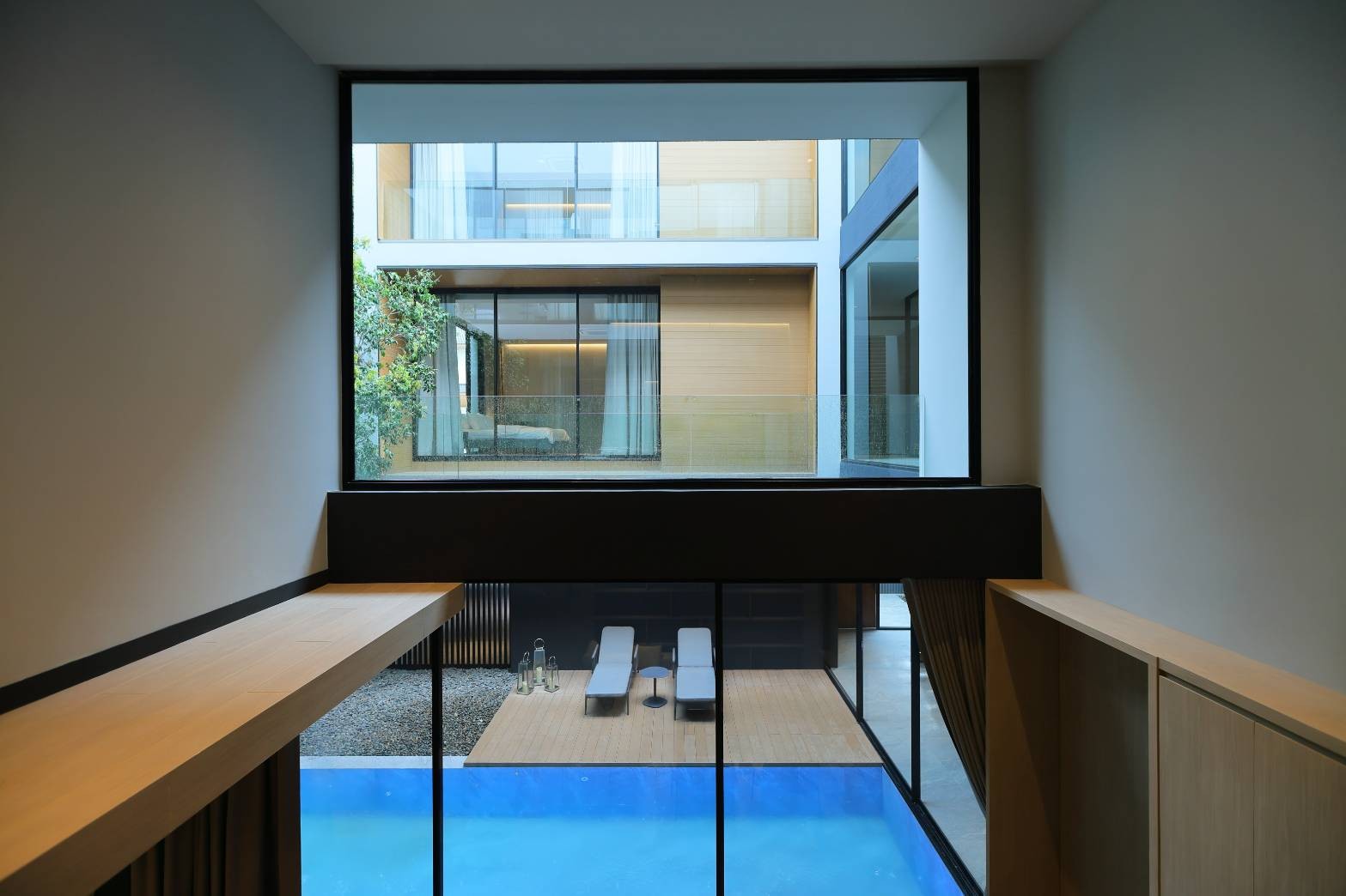 - วางผังเป็นตัวCคั่นกลางฝั่งด้านติดถนนและหลังบ้านด้วยคอร์ทโล่งตั้งแต่ชั้นล่างทะลุไปถึงท้องฟ้า