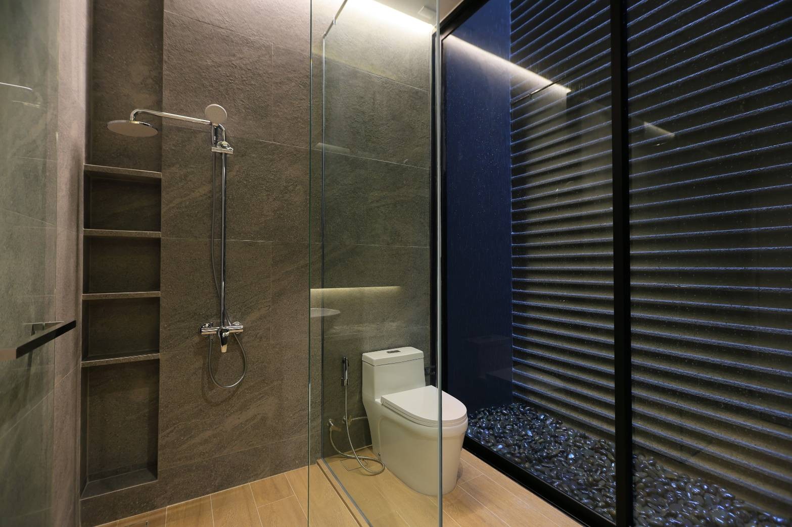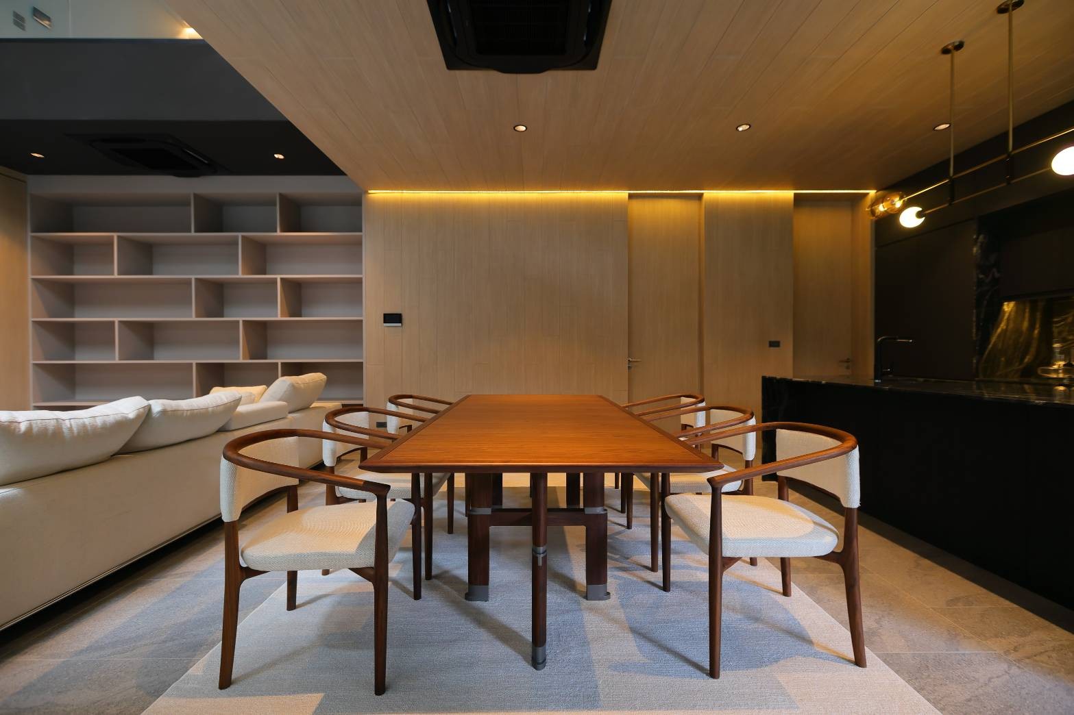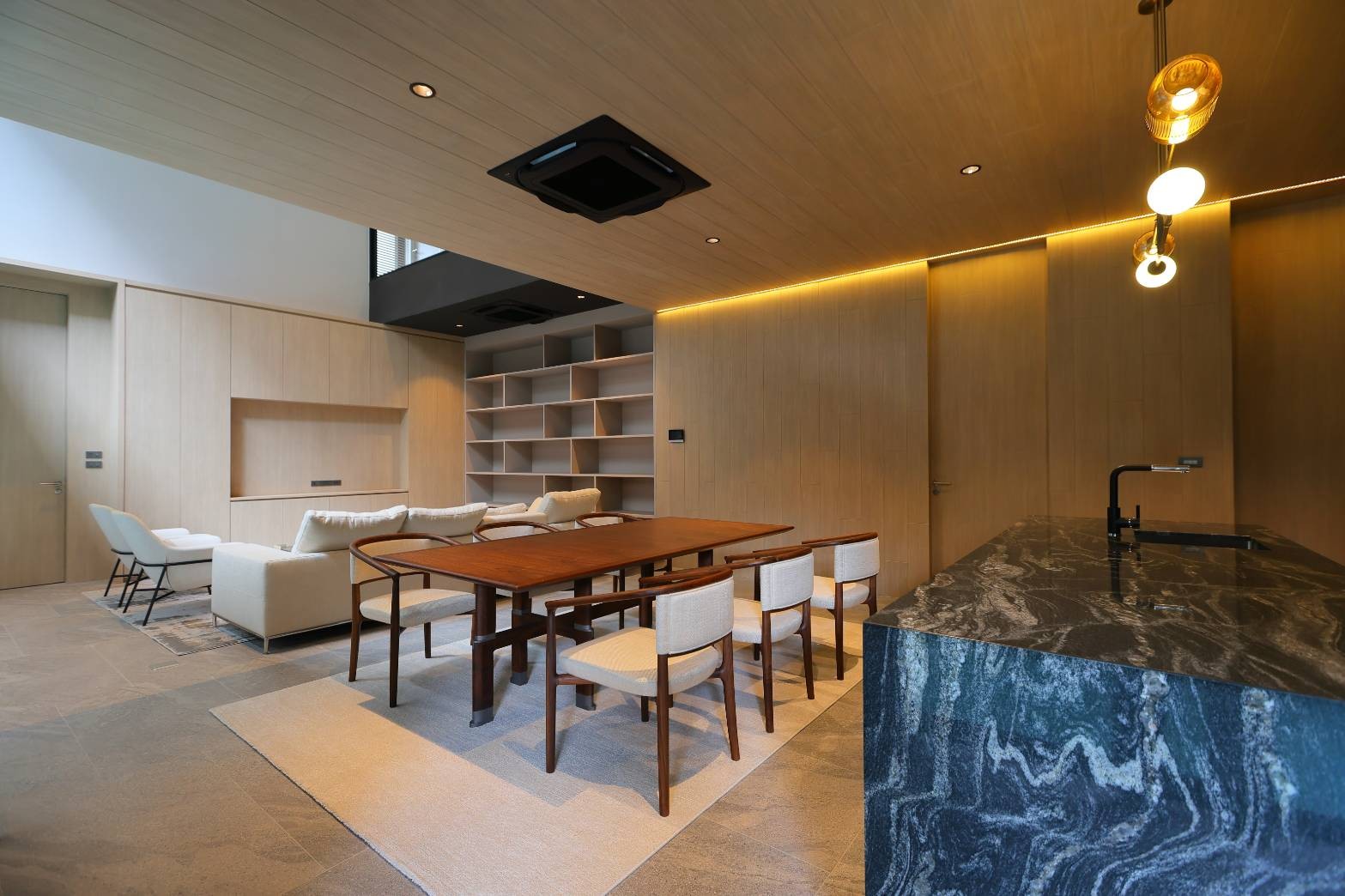 - วางผังเป็นตัวCคั่นกลางฝั่งด้านติดถนนและหลังบ้านด้วยคอร์ทโล่งตั้งแต่ชั้นล่างทะลุไปถึงท้องฟ้า