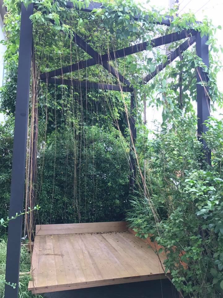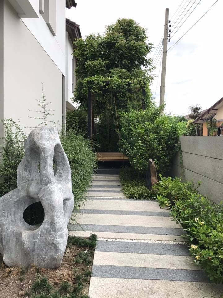 - หน้าบ้านตกแต่งสวน มีมุมชิงช้าขนาดใหญ่สำหรับพักผ่อน