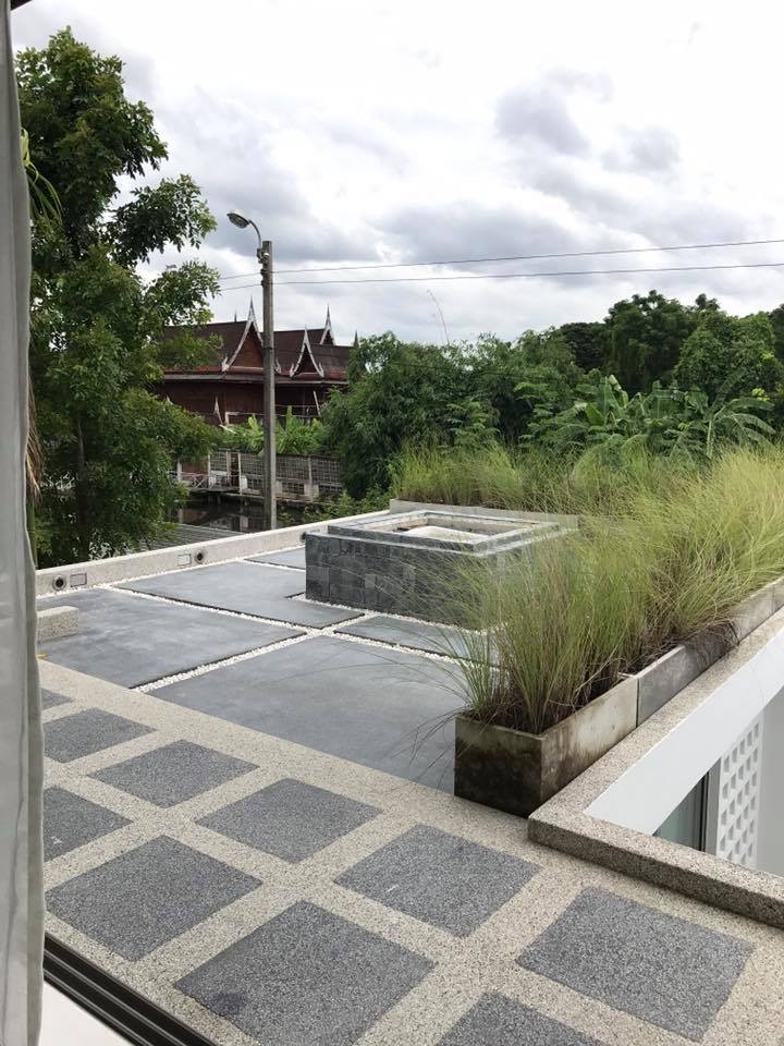 - ชั้นบน 2 ห้องนอน2 ห้องน้ำ ห้องนอนใหญ่ มีเทอเรสจากห้องนอนเดินออกมาดูวิว คลองพระยาสุเรนทร์ หรือเป็นที่สังสรรค์ ทำเตาสำหรับปิ้งย่าง