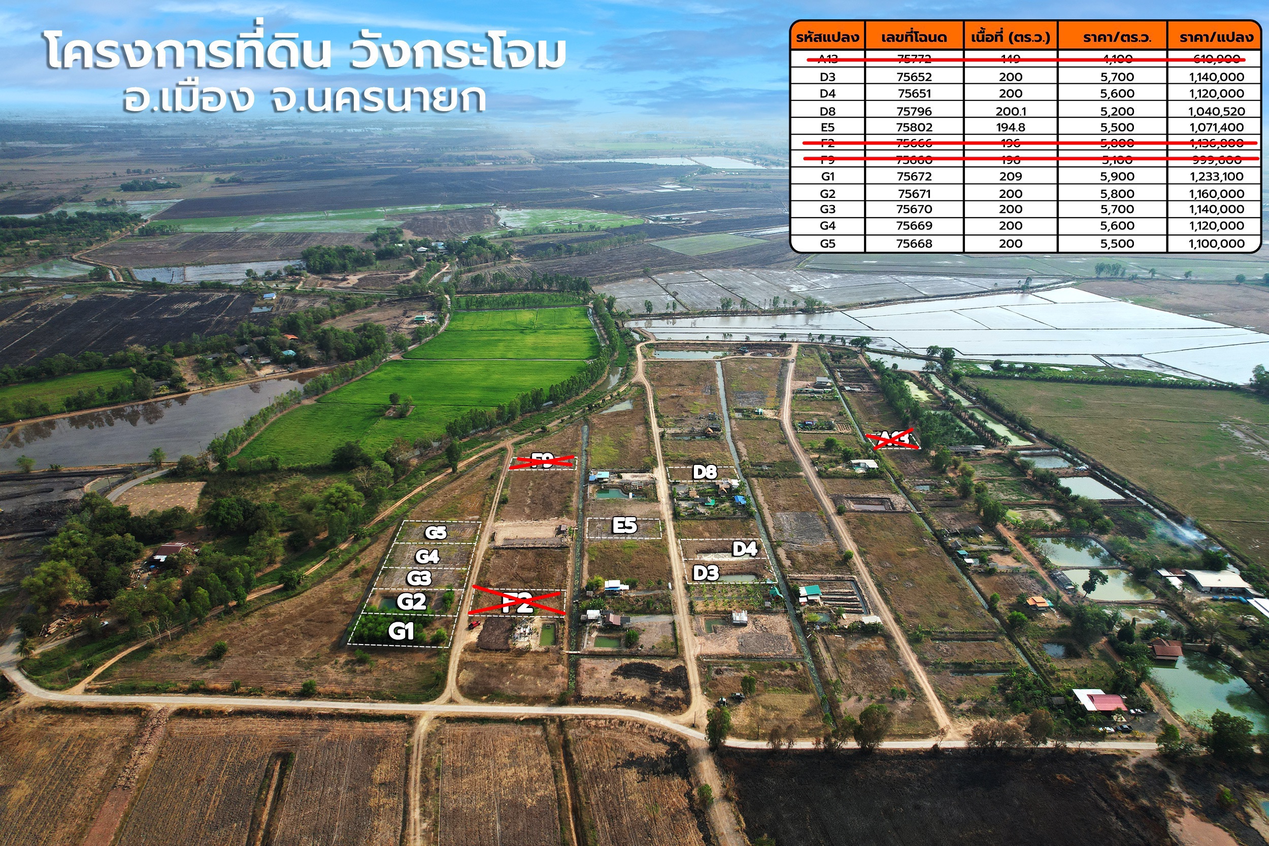 ขายที่ดินเปล่า 194 ตรว. แปลง E5 โครงการวังกระโจม นครนายก เหมาะสร้างบ้าน ที่อยู่อาศัย