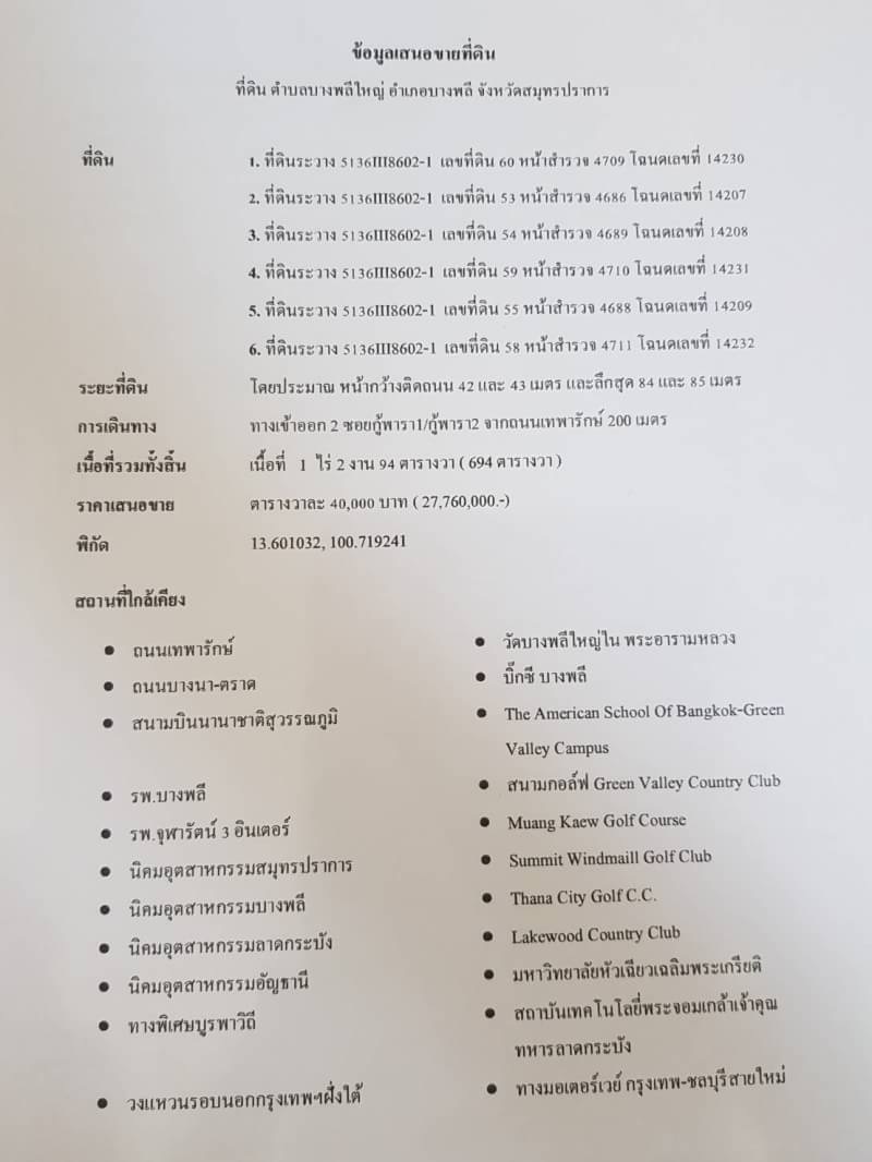 ชื่อโครงการ : ที่ดิน ซอยกู้พารา บางพลีใหญ่