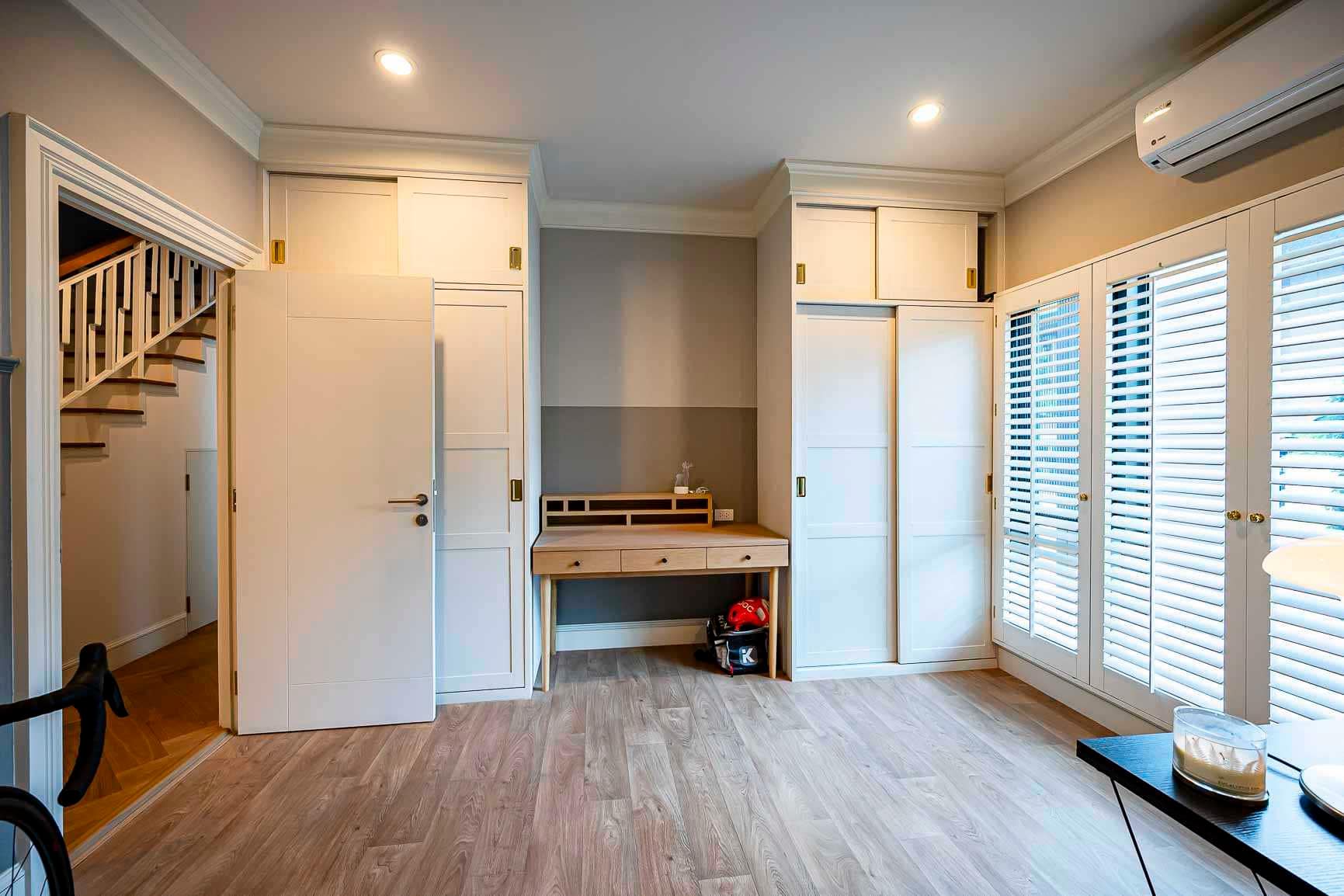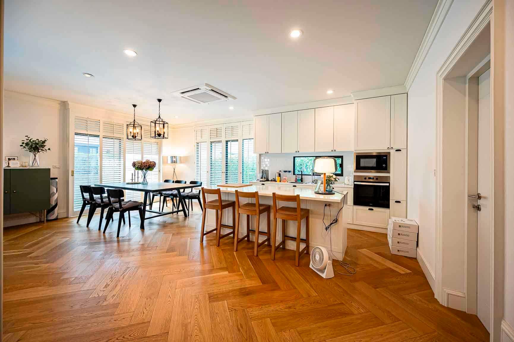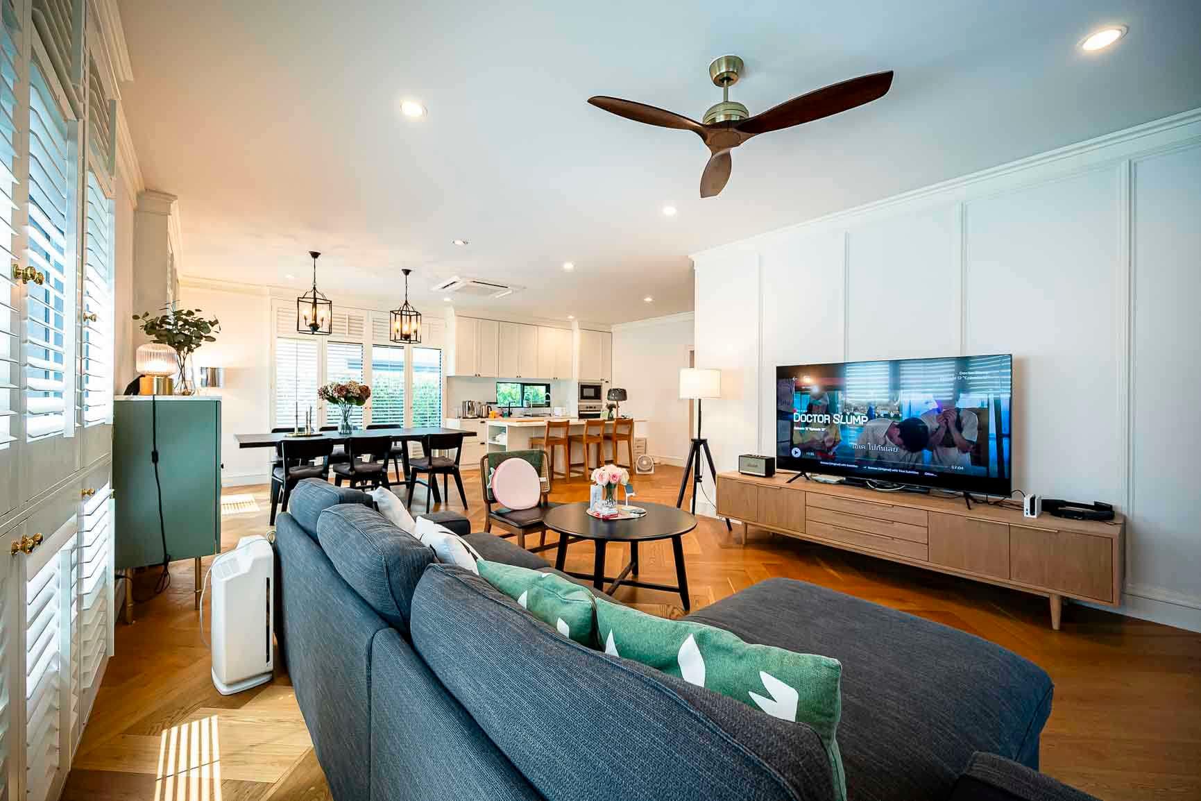 - มีเฟอร์นิเจอร์และเครื่องใช้ไฟฟ้าทุกอย่างพร้อมสำหรับย้ายเข้ามาอยู่ได้ทันที เช่น ติดมุ้งลวดทั้งหลัง ผ้าม่าน โดดเด่นด้วยหน้าต่างบานเกล็ดไม้ พื้นบ้านเปลี่ยนปูด้วยไม้จริงทั้งหลัง
