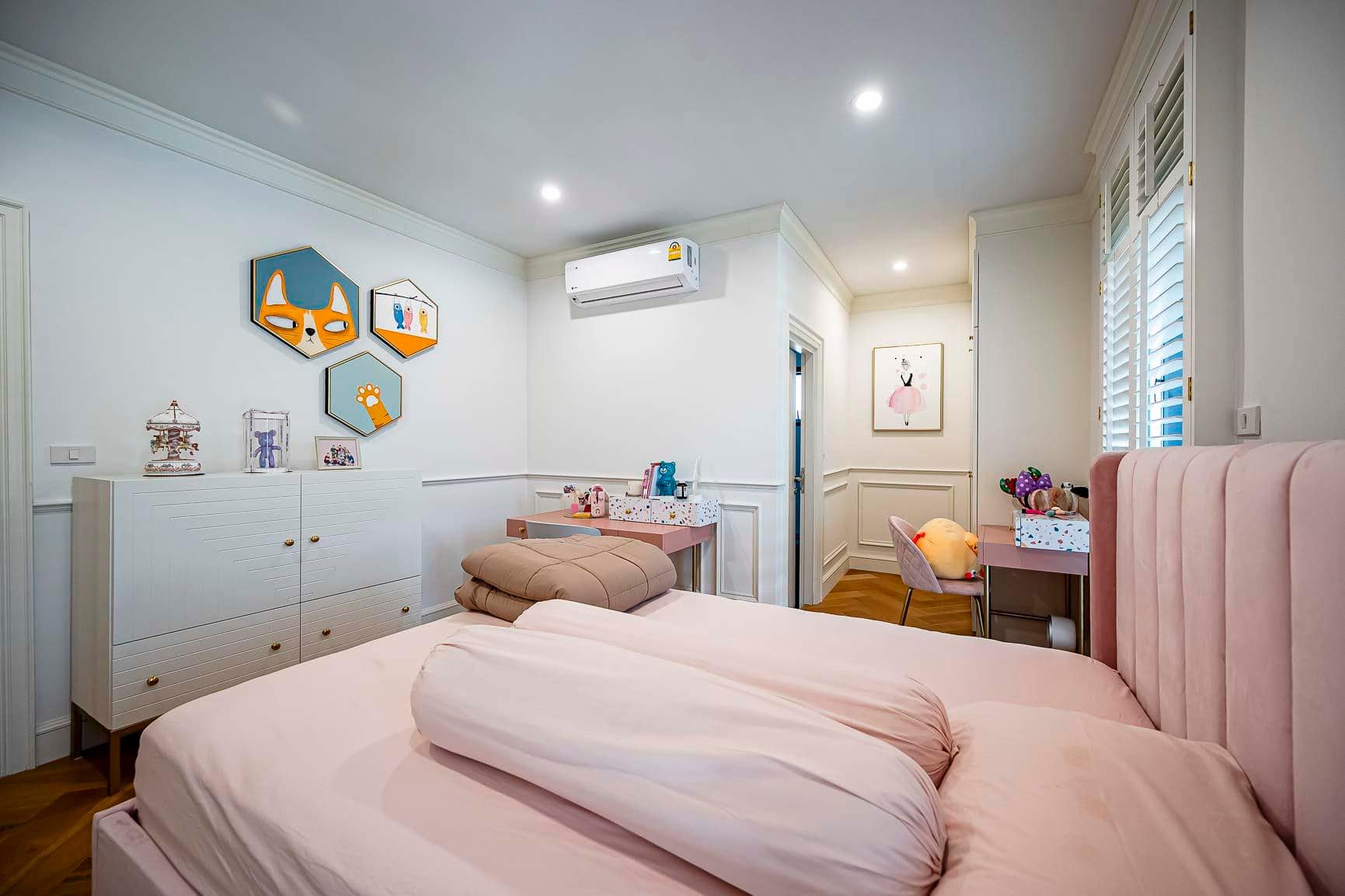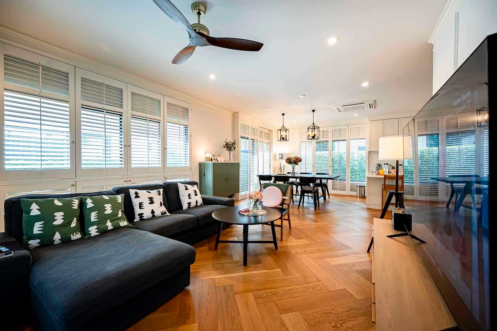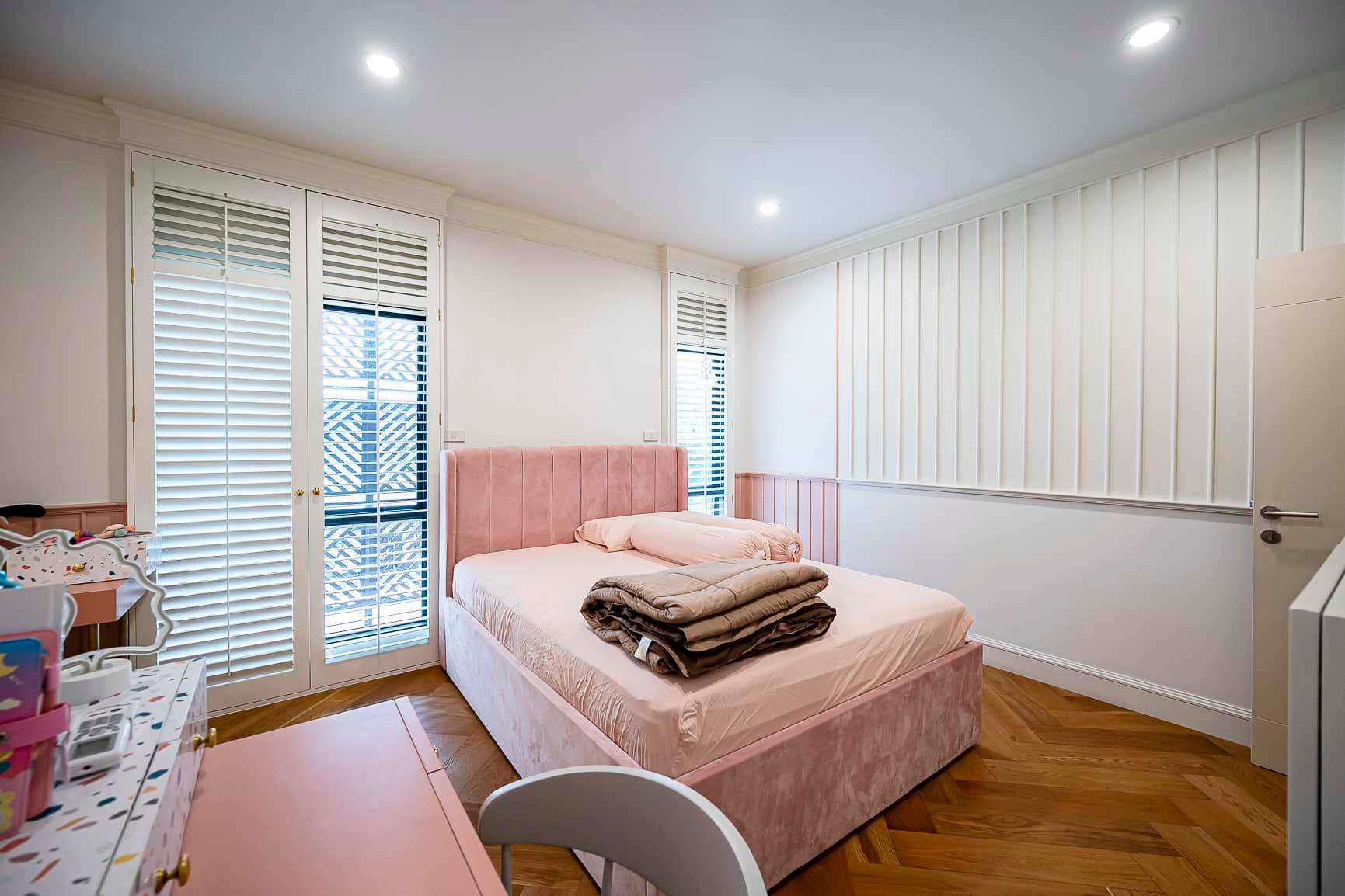 - มีเฟอร์นิเจอร์และเครื่องใช้ไฟฟ้าทุกอย่างพร้อมสำหรับย้ายเข้ามาอยู่ได้ทันที เช่น ติดมุ้งลวดทั้งหลัง ผ้าม่าน โดดเด่นด้วยหน้าต่างบานเกล็ดไม้ พื้นบ้านเปลี่ยนปูด้วยไม้จริงทั้งหลัง