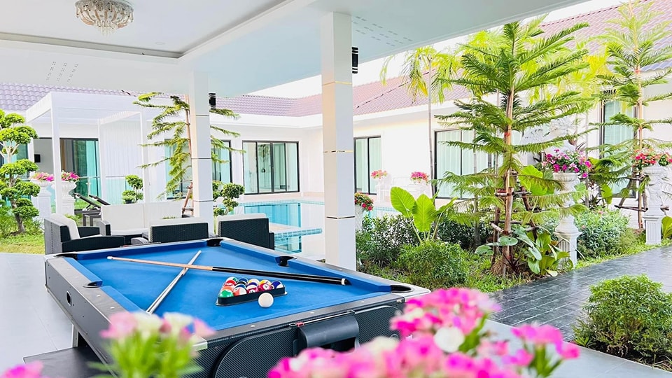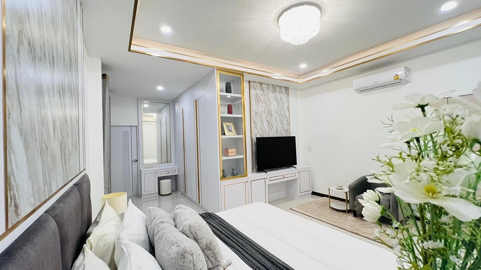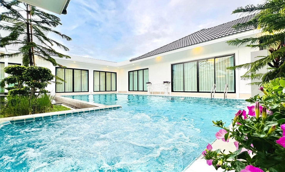 ขายบ้านเดี่ยวพูลวิลล่าพัทยา ชลบุรี บนเนื้อที่เกือบ 1 ไร่ ตกแต่งด้วยเฟอร์นิเจอร์สุดหรู บิวท์อินทั้งหลัง