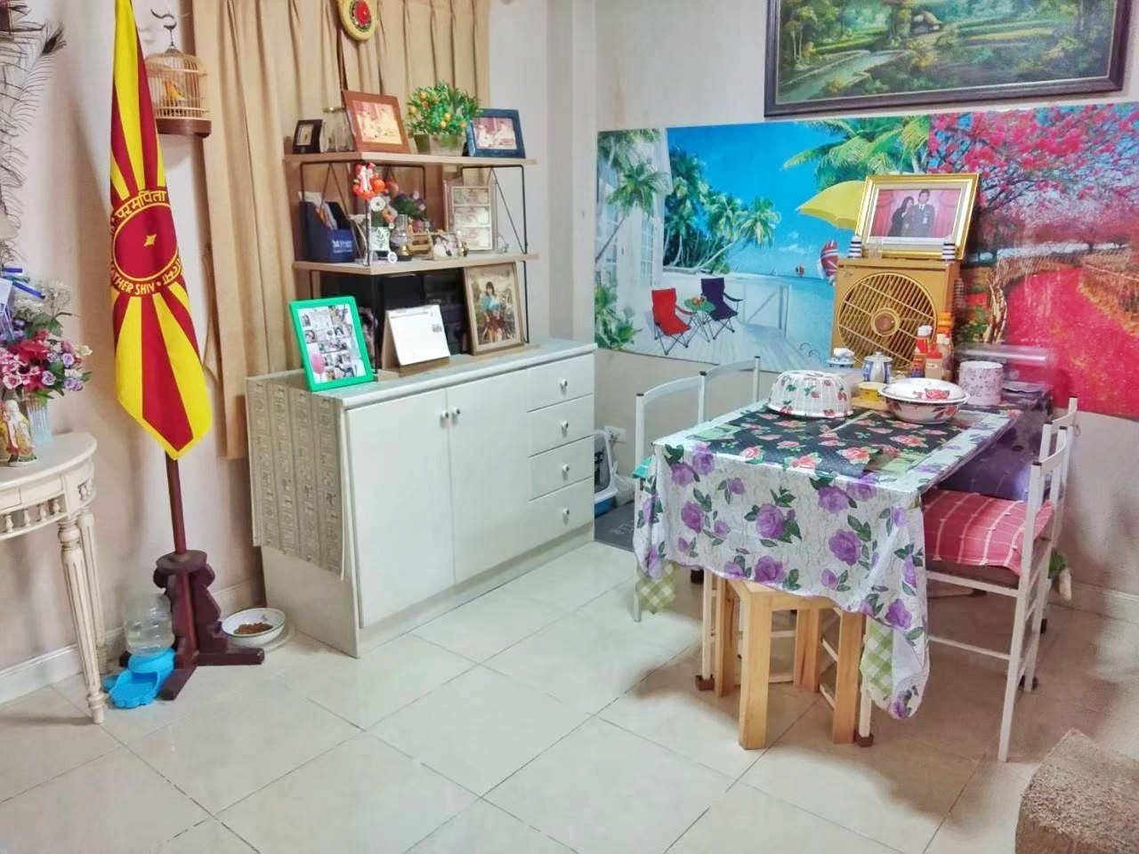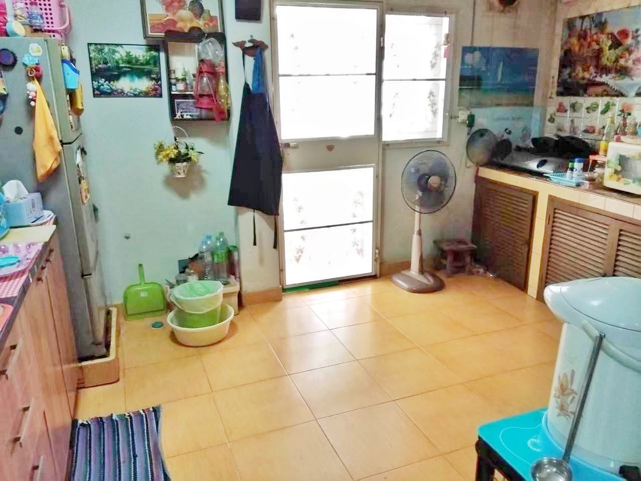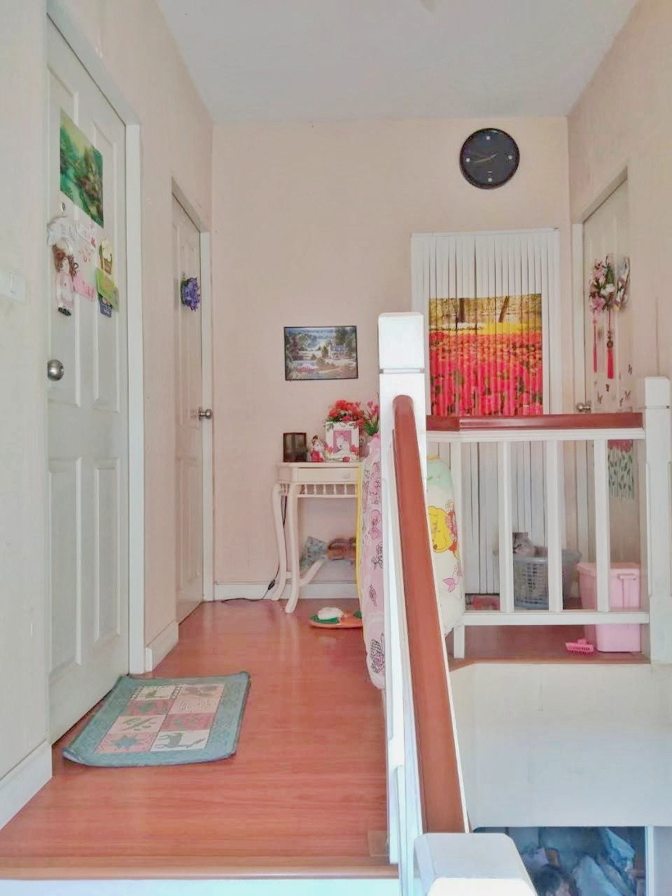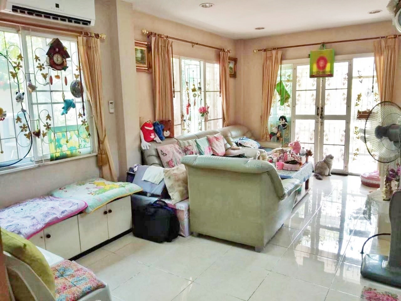 ตกแต่ง ผ้าม่าน แอร์ ชั้นบนพื้นลามิเนต ชั้นล่างพื้นกระเบื้องแกรนิตโต้