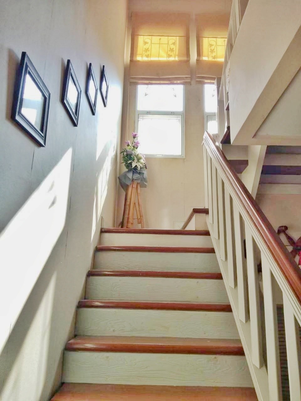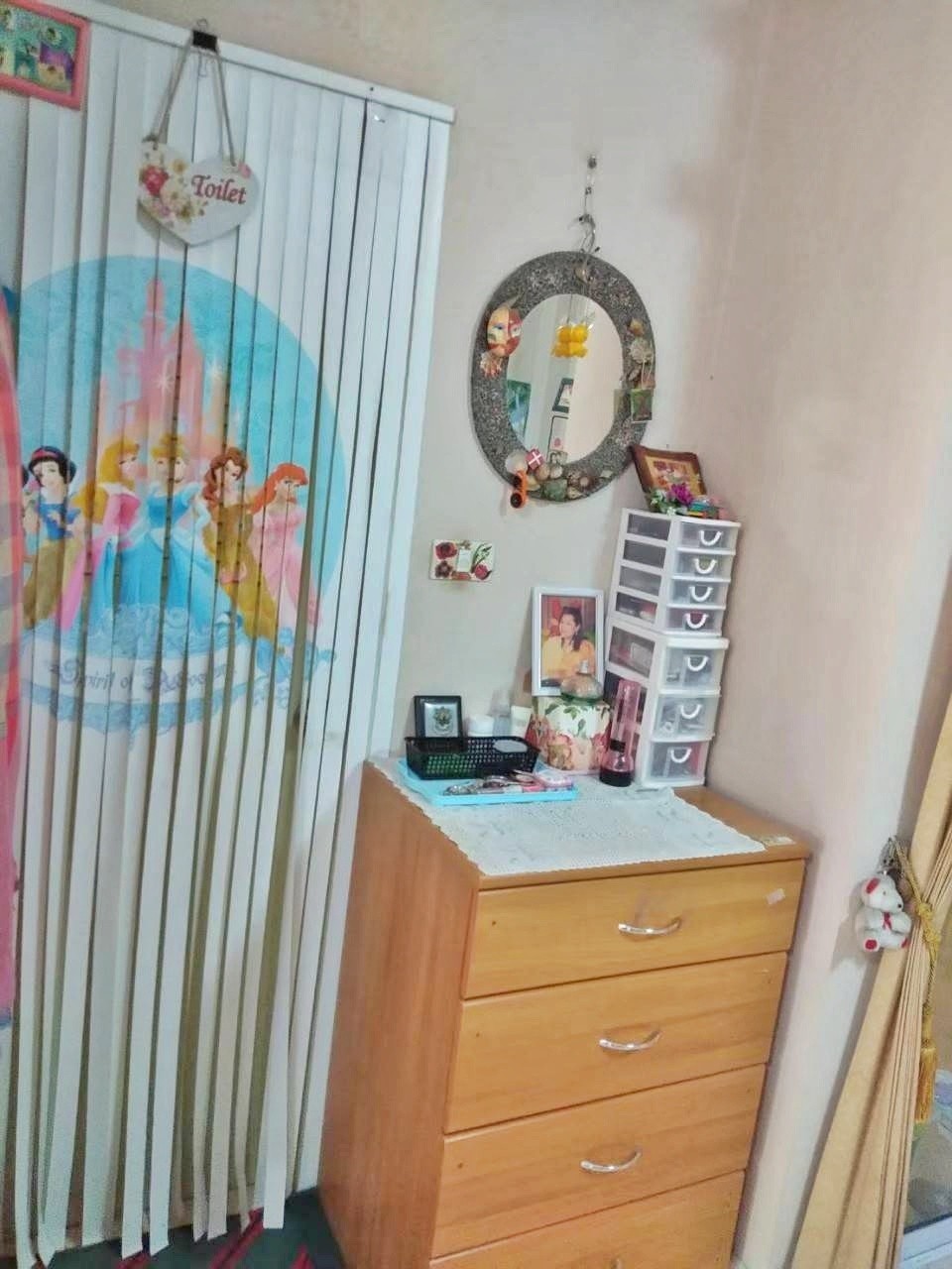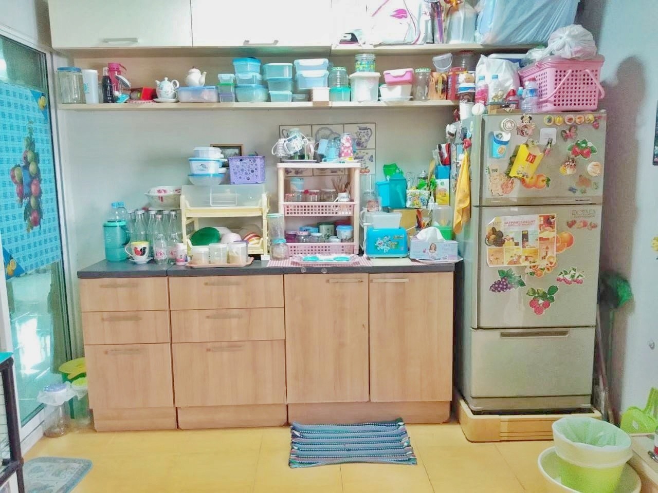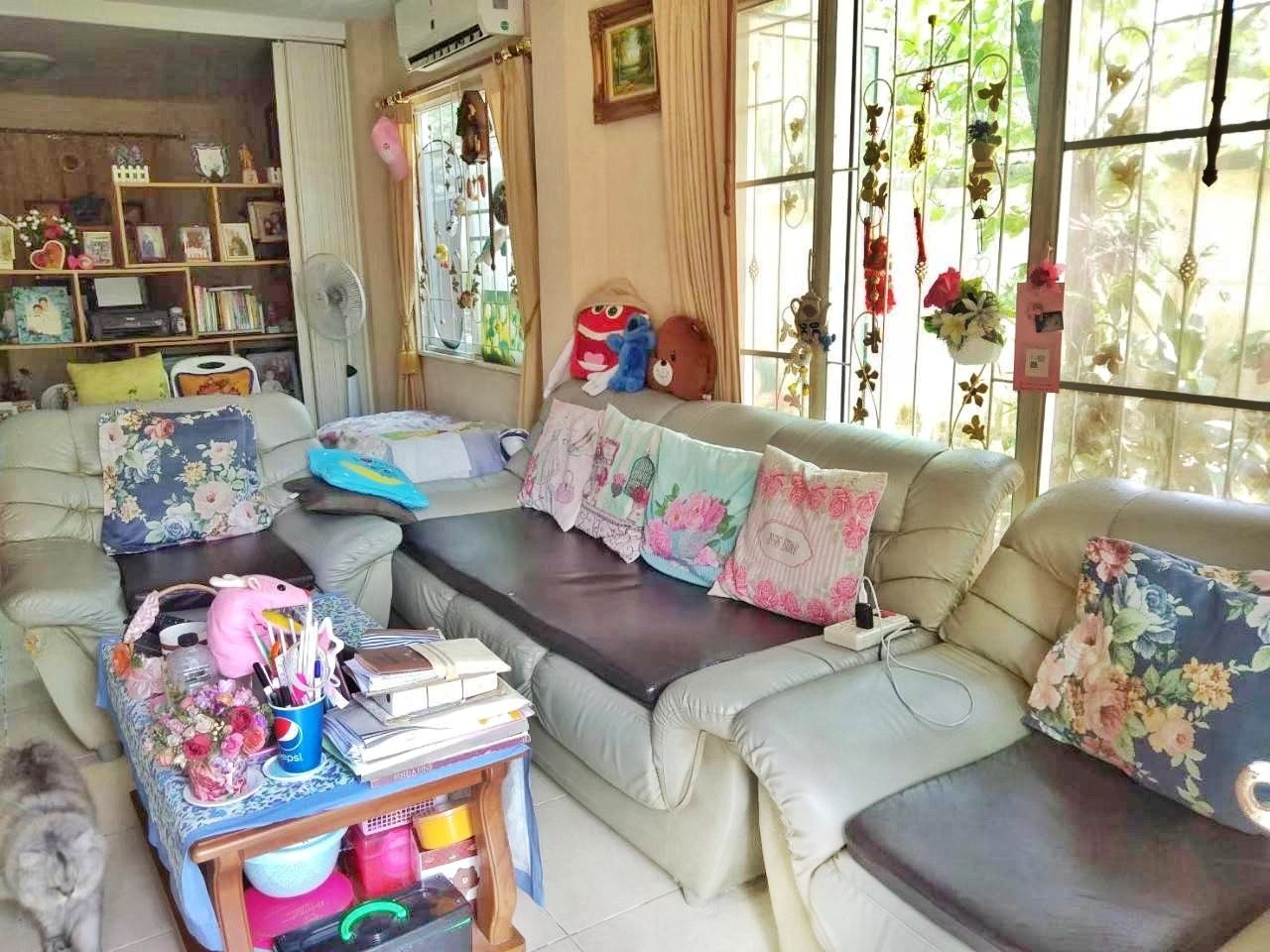 ตกแต่ง ผ้าม่าน แอร์ ชั้นบนพื้นลามิเนต ชั้นล่างพื้นกระเบื้องแกรนิตโต้