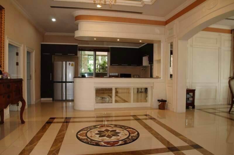 พื้นด้านบนปูด้วยไม้สักอย่างดี ด้านล่าง กระเบื้องแกรนิโต้ .60*.60 ม.