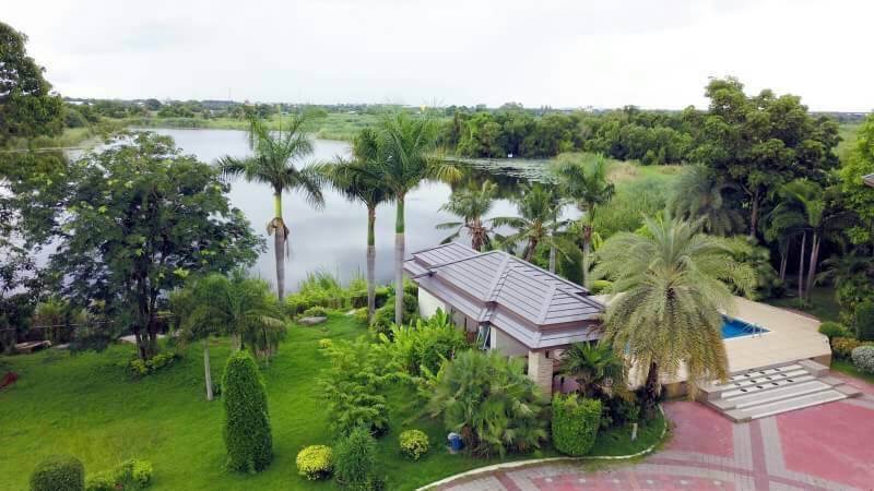 เพราะบรรยากาศภายในบ้าน กว้างขวาง โอ่โถง ตัวบ้านติดริมทะเลสาบ พร้อมสระว่ายน้ำส่วนตัว สวนสวยร่มรื่นด้วยต้นไม้นานาพันธุ์ ลานจอดรถมากกว่า10คัน