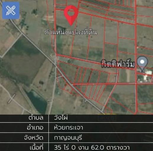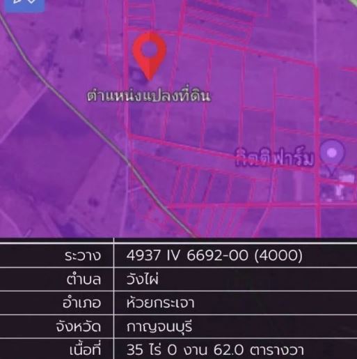 ขายที่ดินเปล่า ห้วยกระเจา กาญจนบุรี 35 ไร่ 0 งาน 62 ตร.วา พื้นที่สีม่วง สามารถขอ ใบ ร.ง. ได้