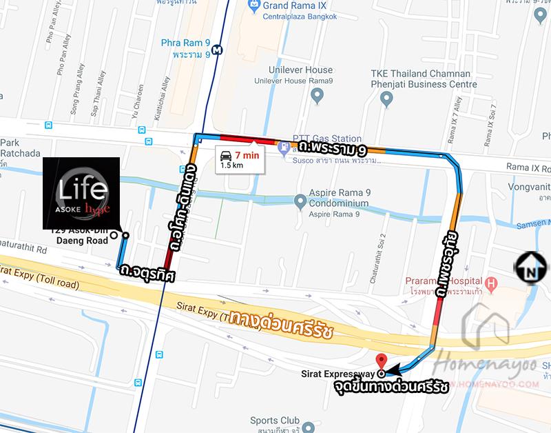 - รถไฟฟ้าใต้ดิน สถานีพระราม 9 : เพียง 300 ม.