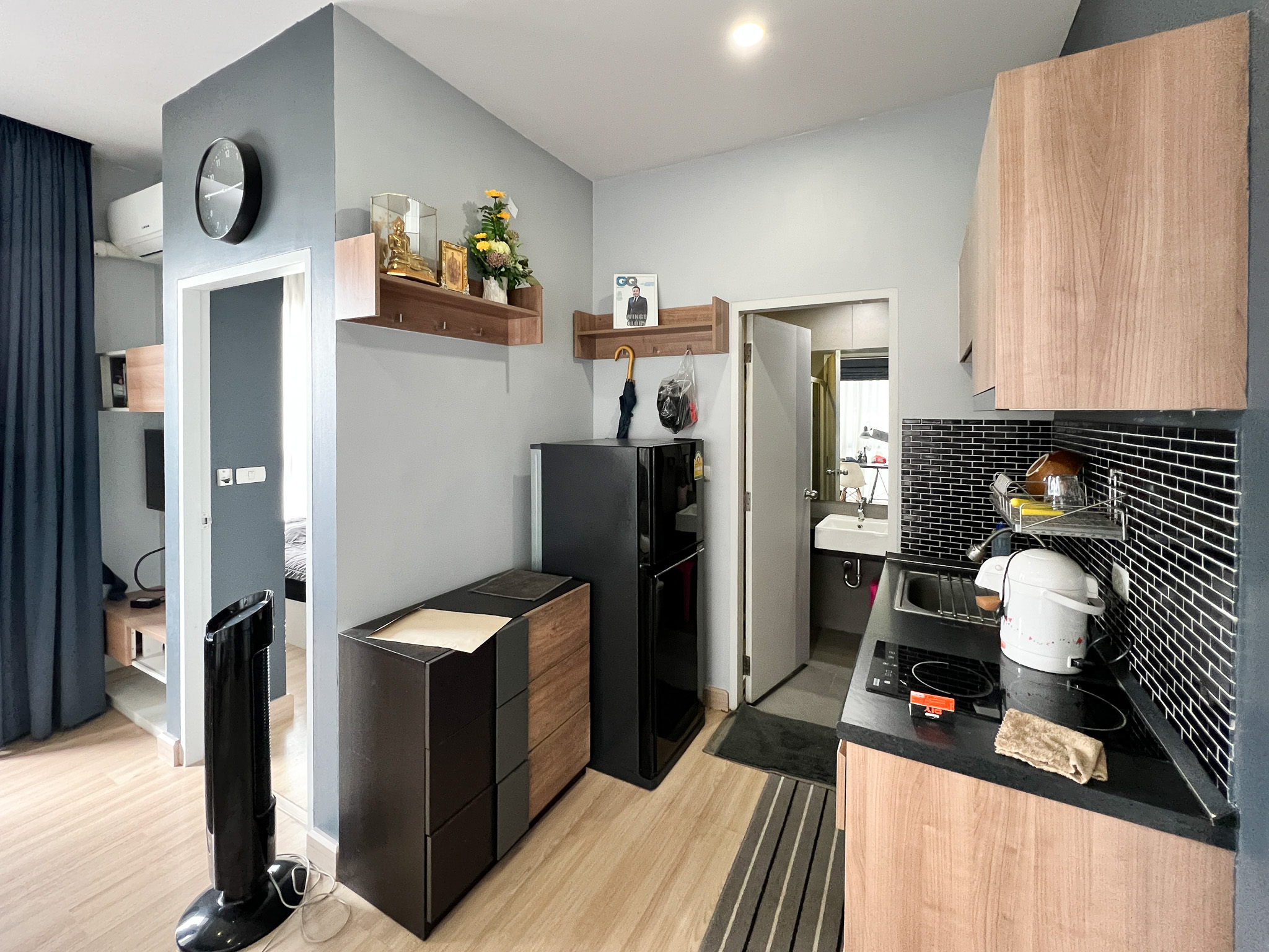 - ขนาด 28.15 ตร.ม 1 ห้องนอน 1 ห้องน้ำ ชั้น 4 ตึก B ห้องหันทิศใต้