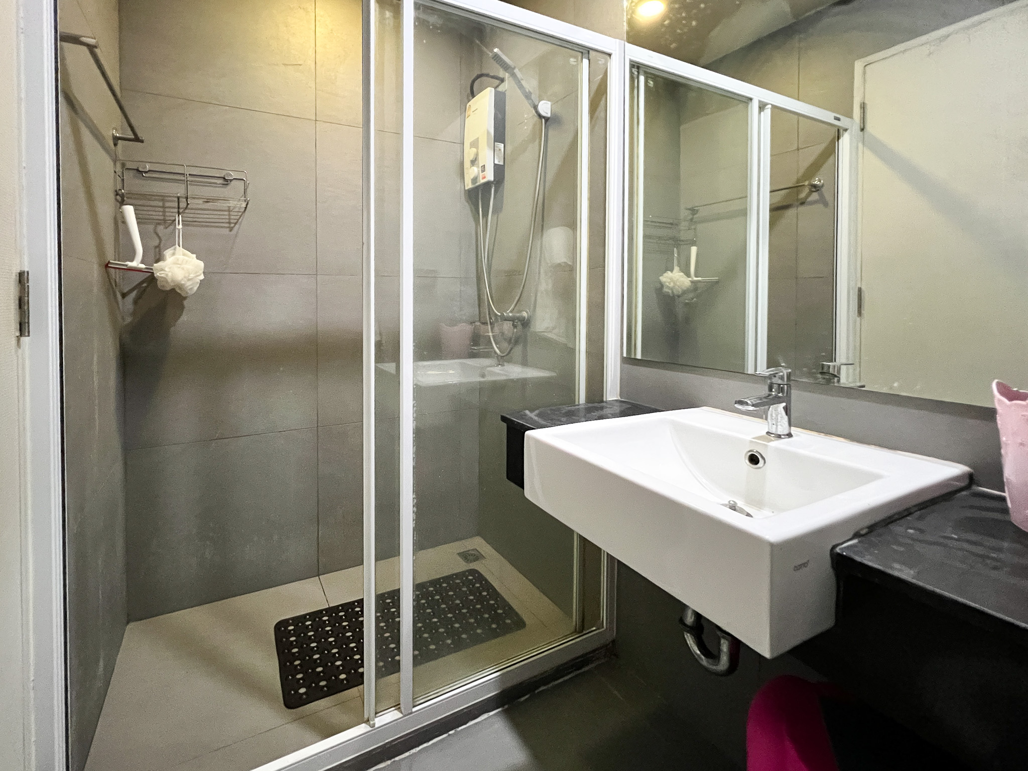 - ห้องน้ำกั้นโซนเปียกแห้งให้เรียบร้อย พร้อมเครื่องทำน้ำอุ่น