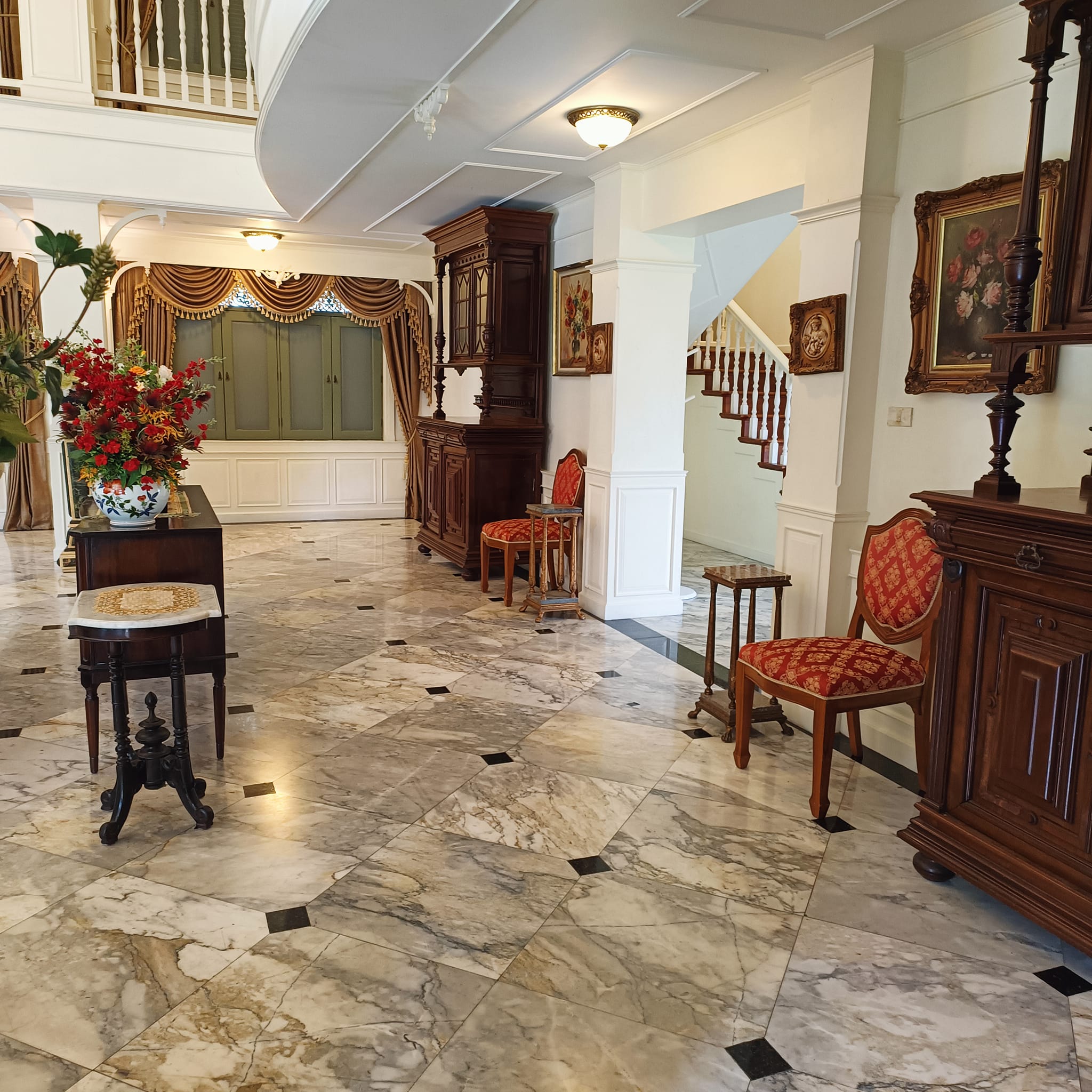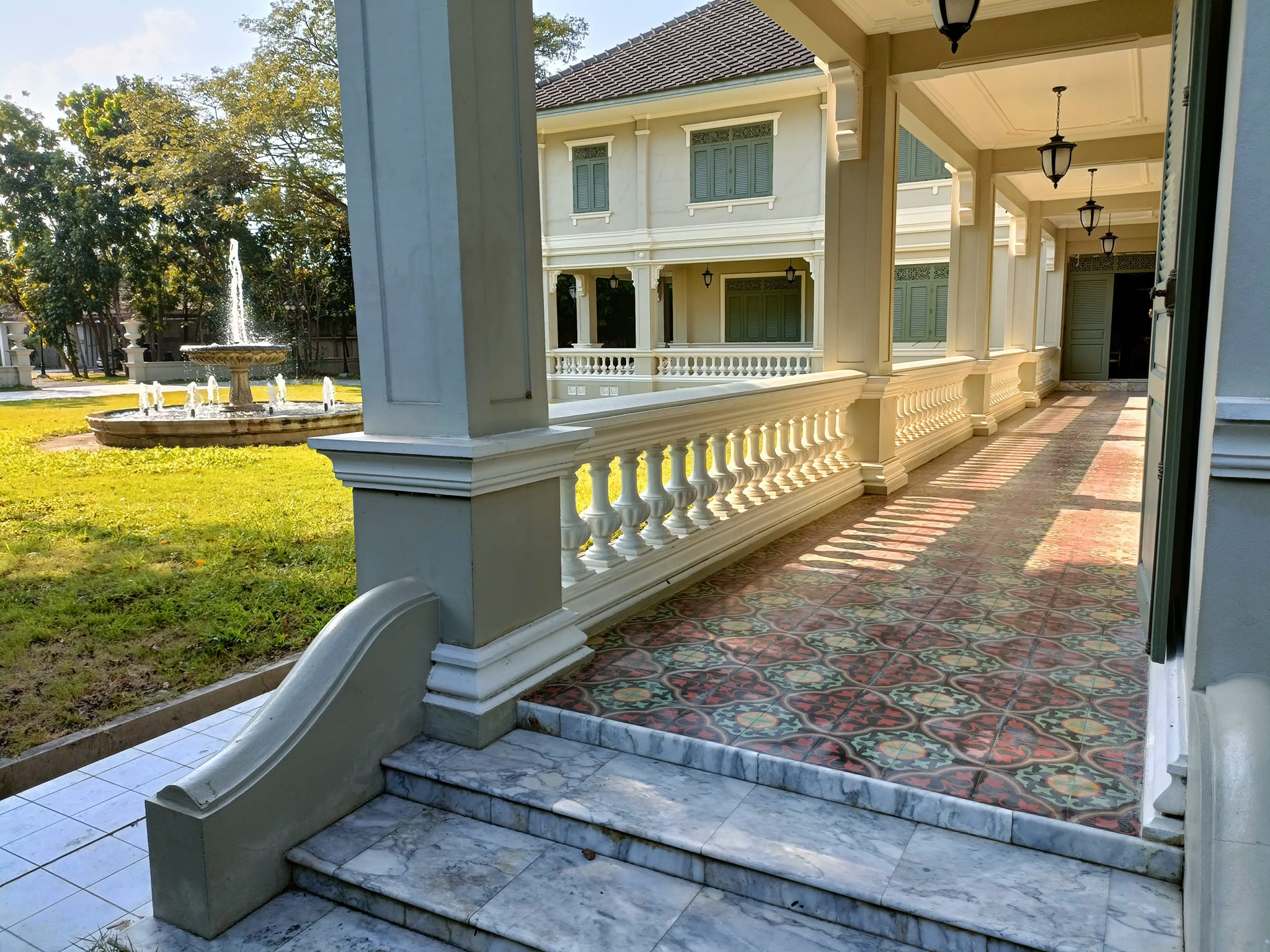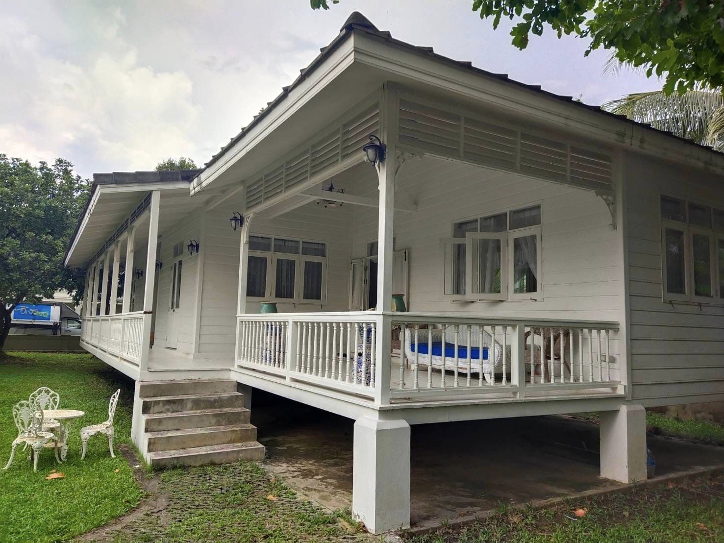 Colonial house for sale 1443 sq.w. 3 buildings used as a location for filming many Thai dramas decorated in a magnificent style fully furnished air-conditioning in every room Krathum Baen District Samut Sakhon Province