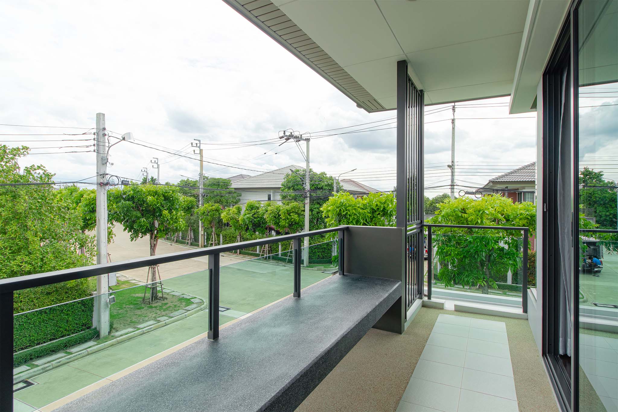 บริเวณหน้าบ้านไม่มีอาคารสูงบดบัง ทำให้โล่งโปร่ง ลมพัดผ่านไปได้อย่างดี