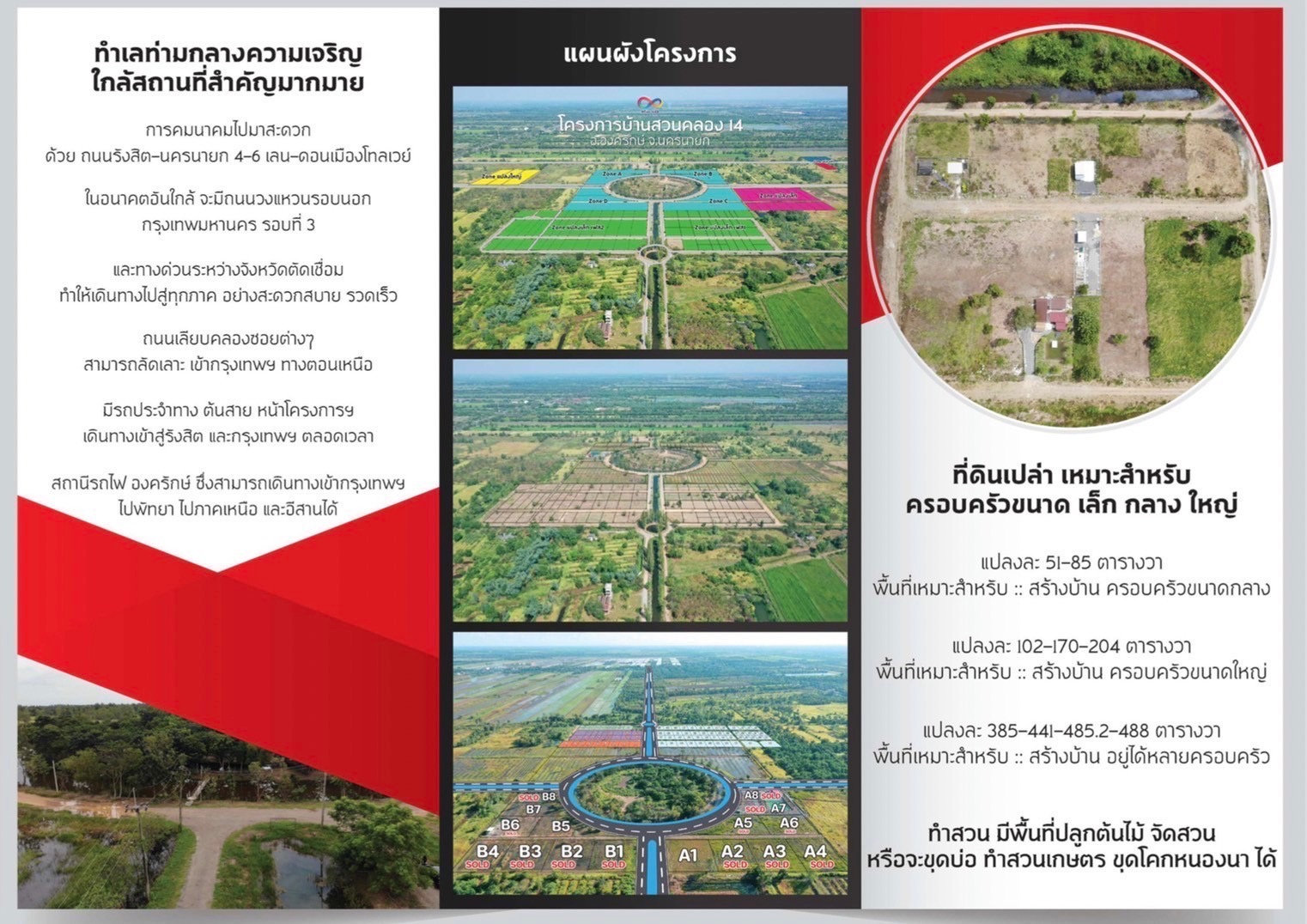 ขายที่ดินเปล่า โครงการบ้านสวนคลอง 14 รอบวงเวียน องครักษ์ นครนายก ขนาด 485 ตร.วา แปลง B4 ที่สวย เหมาะสร้างที่อยู่อาศัย