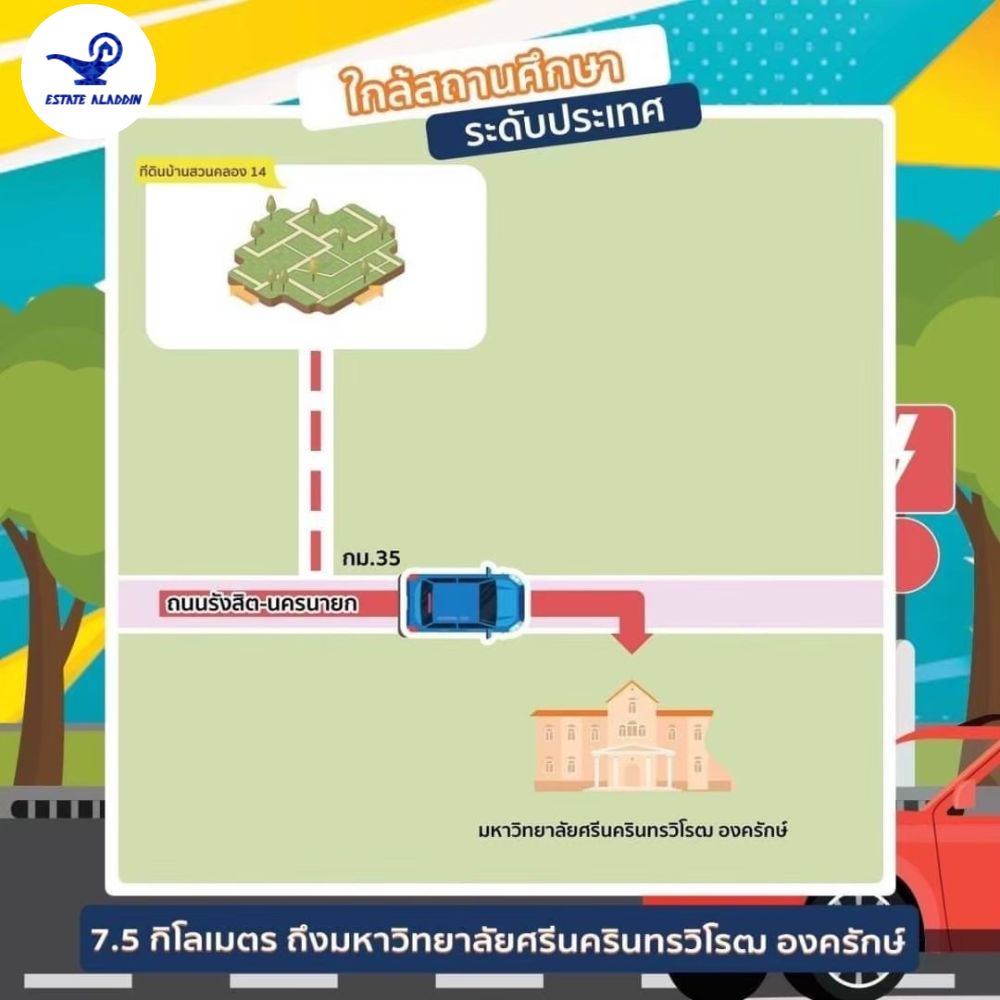 - มหาวิทยาลัย ศรีนครินทรวิโรฒ องครักษ์ 7.5 กิโลเมตร