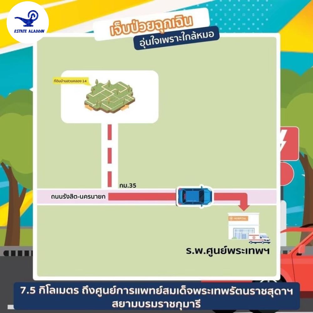 - ร.พ. ศูนย์การแพทย์สมเด็จพระเทพรัตนราชสุดาฯ สยามบรมราชกุมารี 7.5 ฏิโลเมตร