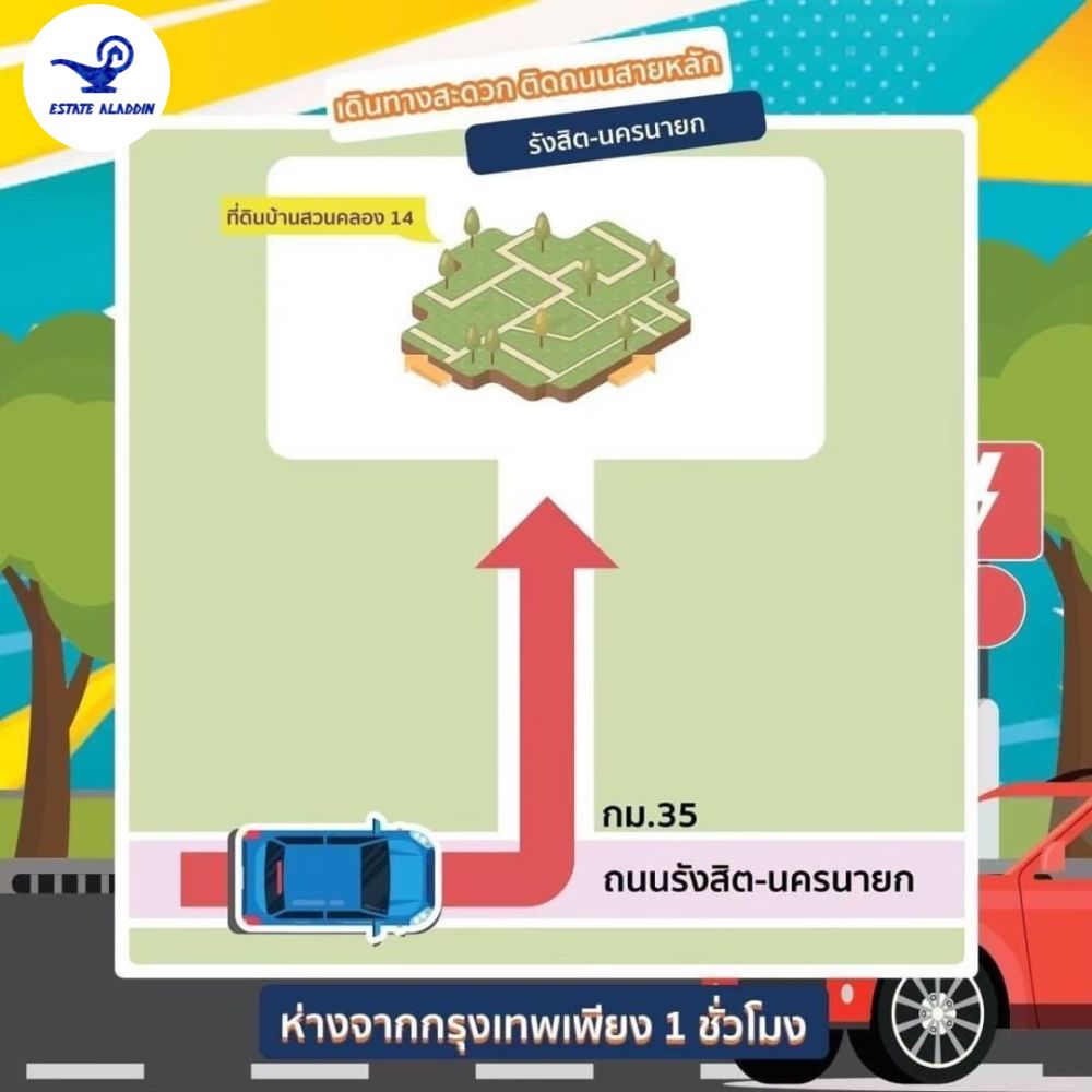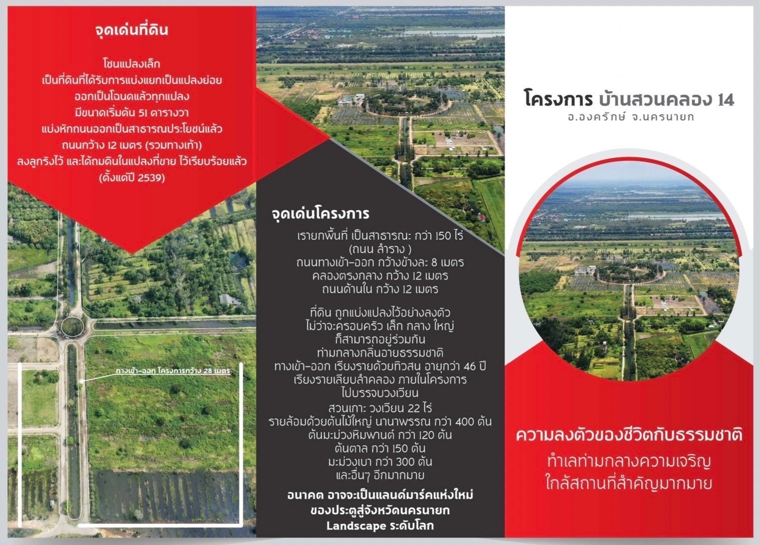ขายที่ดินเปล่า ขนาด 485 ตร.วา โครงการบ้านสวนคลอง 14 รอบวงเวียน องครักษ์ นครนายก แปลง B5 ที่สวย เหมาะสร้างที่อยู่อาศัย