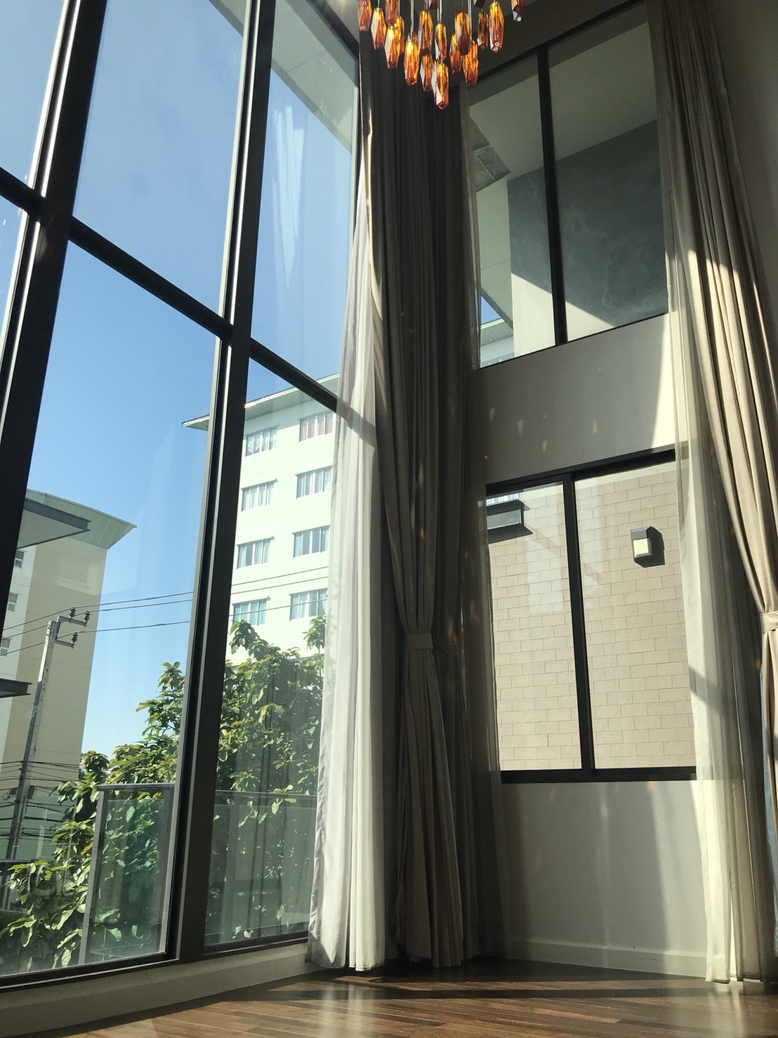 - ภายใต้คอนเซ็ปต์ Urban Home Re-invented โดยมีDouble Volume Living Room ที่สูงถึง 6 เมตร เชื่อมต่อระหว่างพื้นที่ส่วน Living Room ชั้น 1 และชั้น 2 ผ่านกระจกบานกว้าง สร้างความโปร่งโล่งให้กับบ้าน
