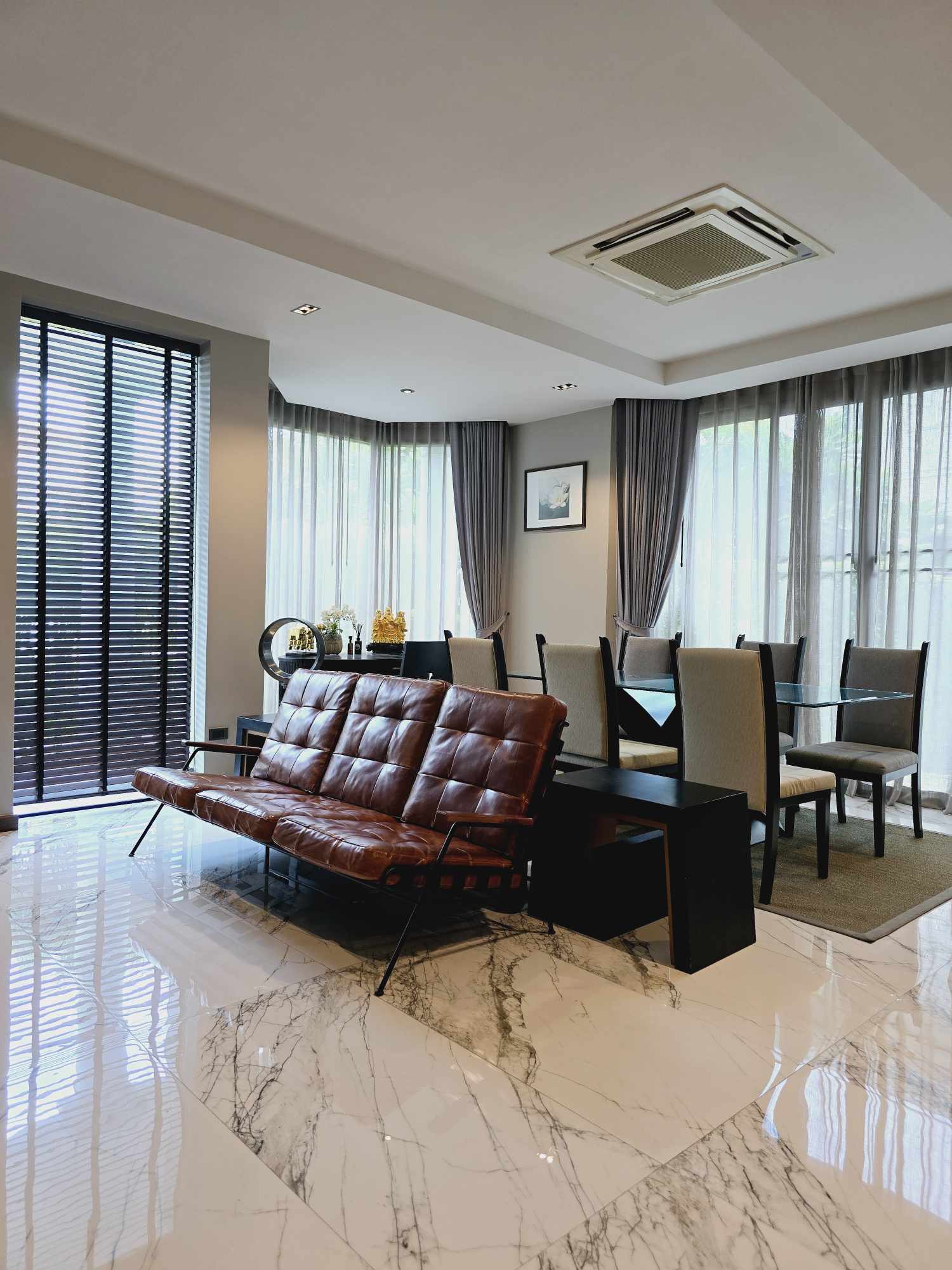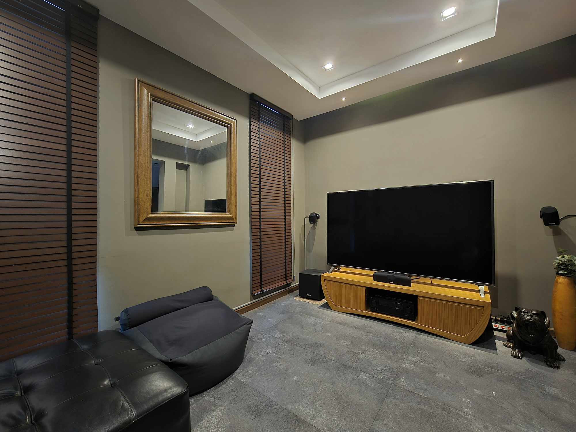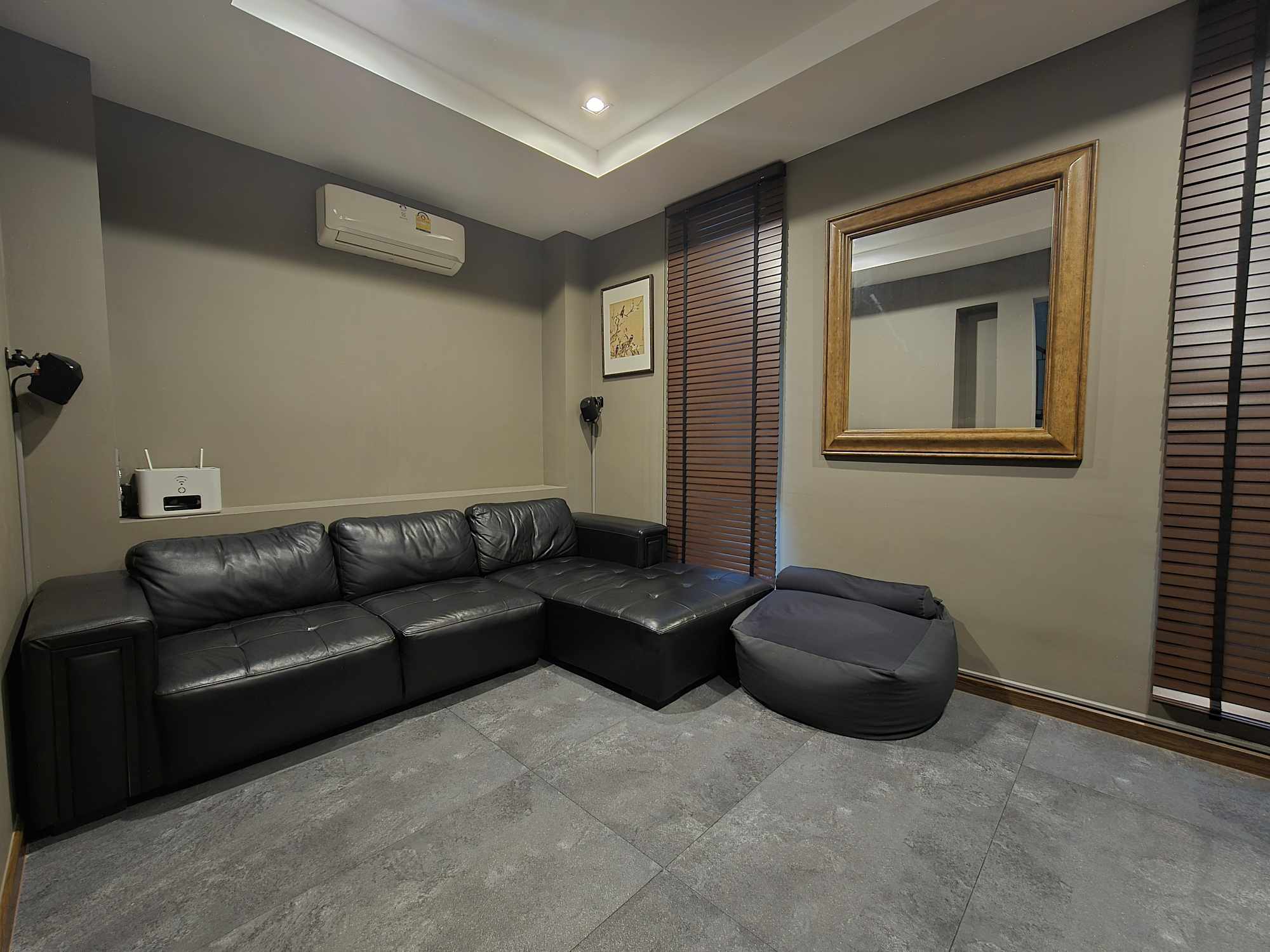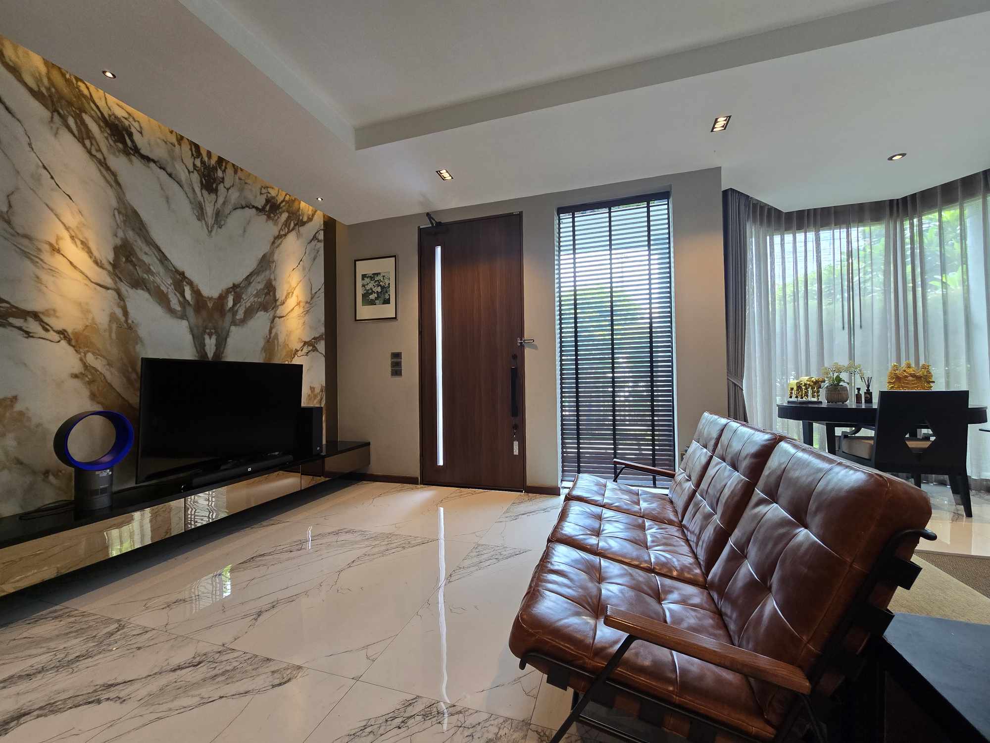 - ห้องดูหนัง: Smart TV 75 นิ้ว ชุด Home theater โซฟาหนังแท้