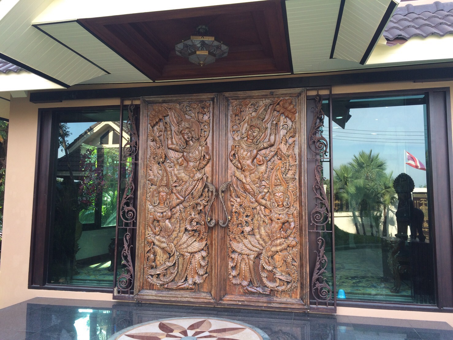 -ตัวบ้านเป็นปูน+ไม้แดง+กระจกเจียขอบทุกบาน