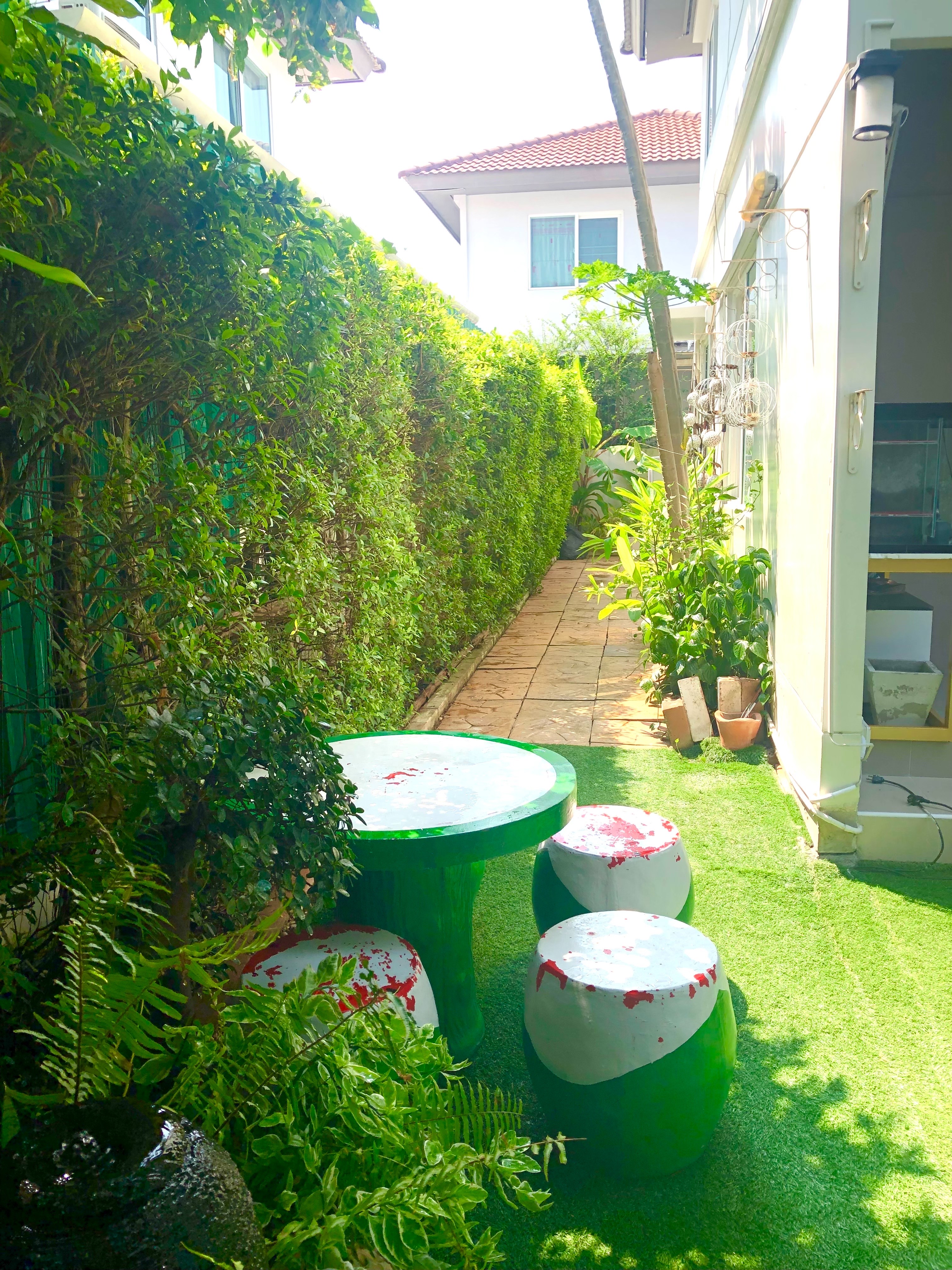 1. แถมสวนรอบบ้าน พร้อมปูหิน ปูหญ้าเทียม บรรยากาศร่มรื่น