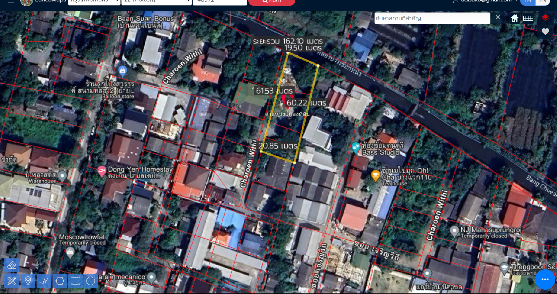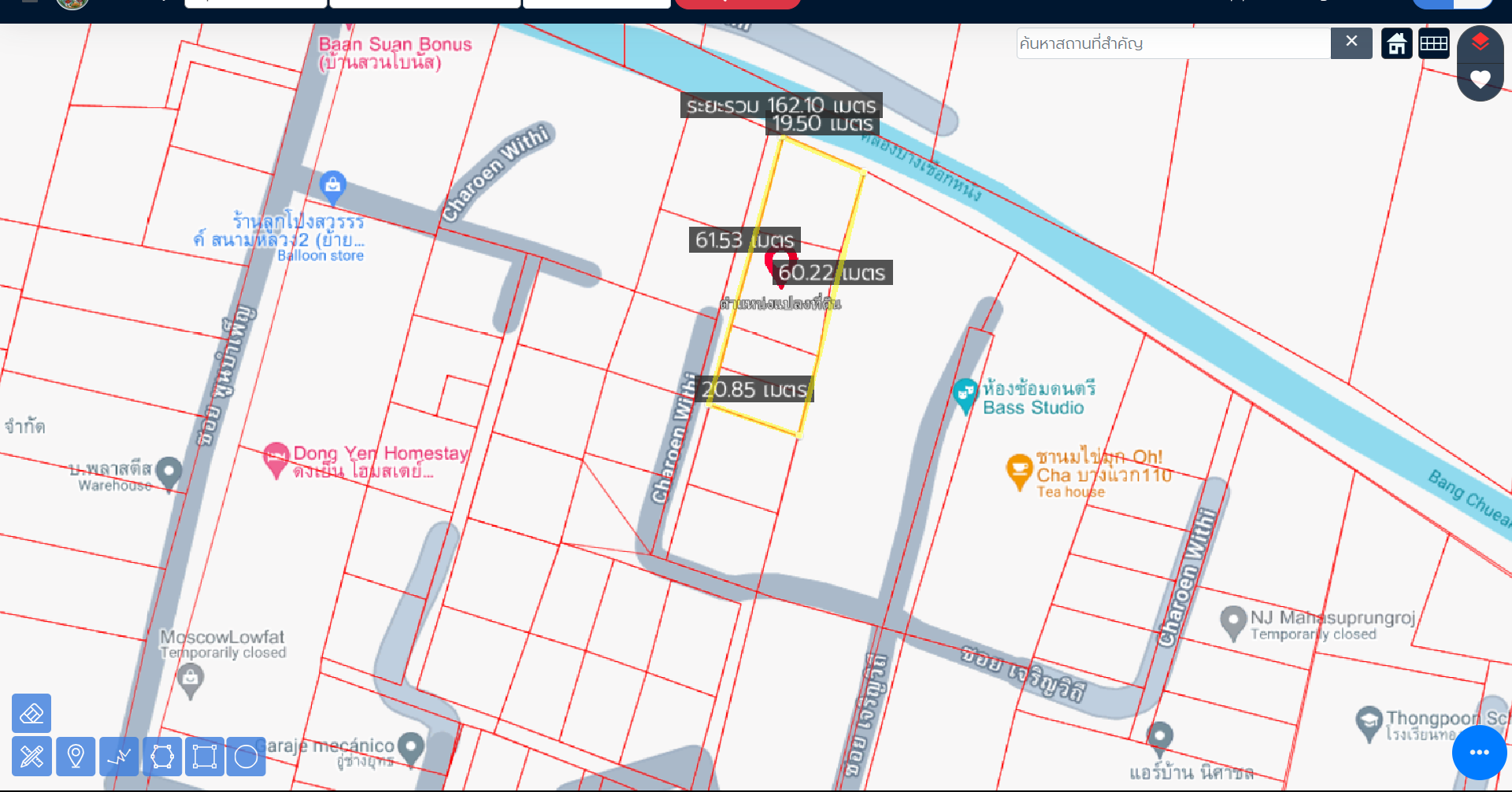มีด้านติดคลองบางเชือกหนัง 20 เมตร ติดถนนซอย 40 เมตร