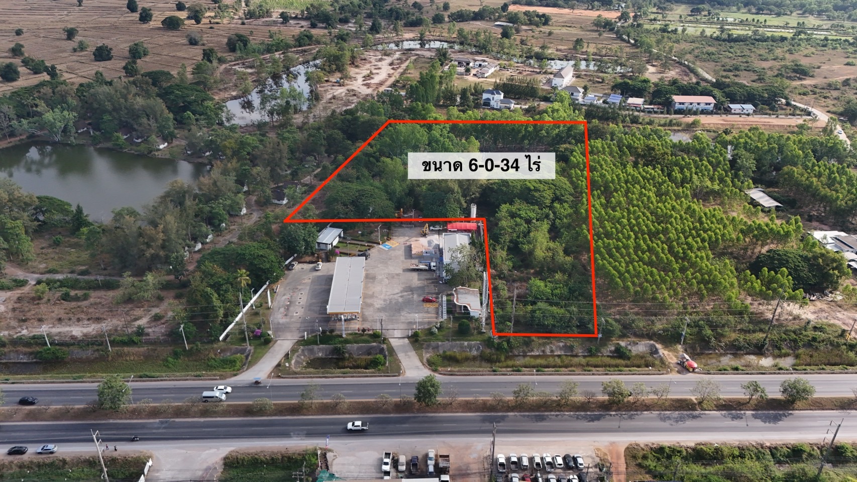 • ที่ดินติดปั้ม Shell (นาดี) ขนาด 6 ไร่ 34 ตารางวา