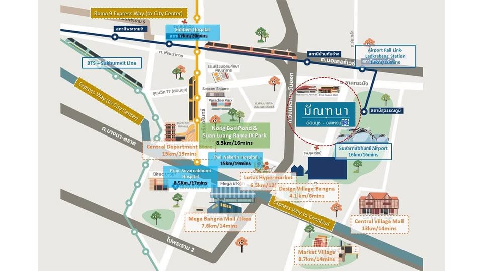 7.6กม.จากเมกกะบางนา และ 13กม.จากสนามบินสุวรรณภูมิ