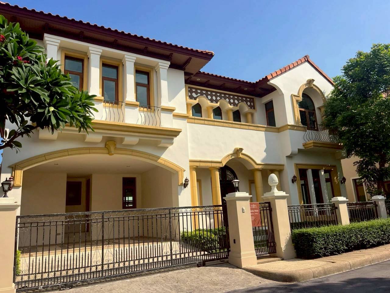 - มุมหน้าบ้านถูกออกแบบให้มีความโดดเด่นด้วยศิลปะแบบ “อาร์ค สไตล์เมดิเตอร์เรเนียน ผสมมัวร์”