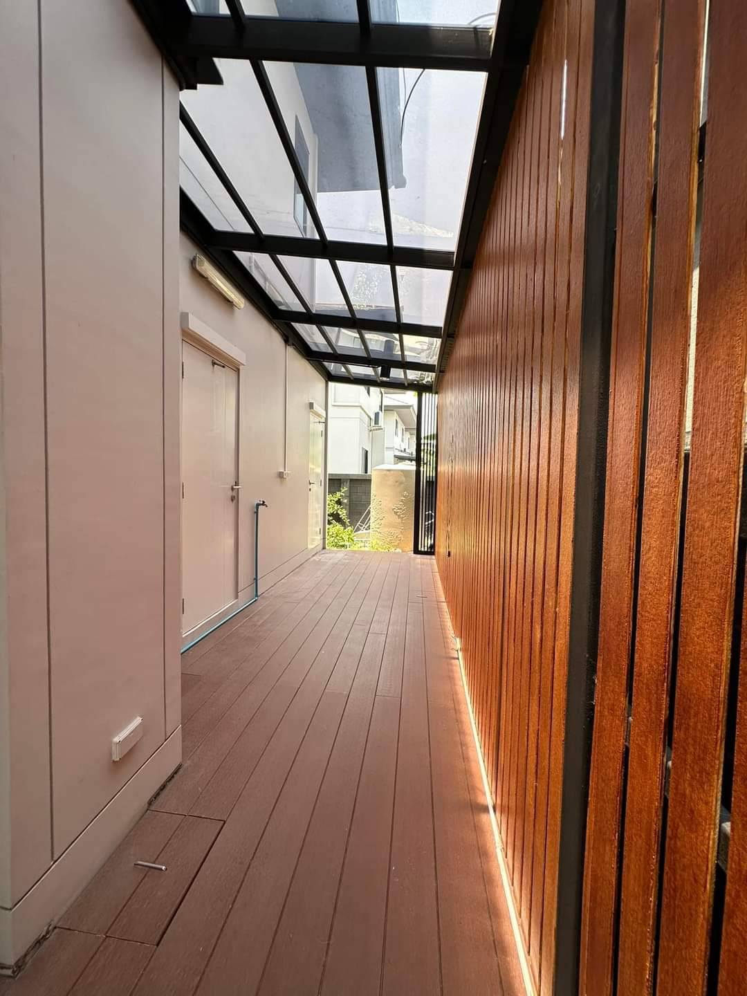 - หลังบ้านต่อเติมพื้นไม้และระแนงไม้เทียม SCG หลังคา Shinkolite