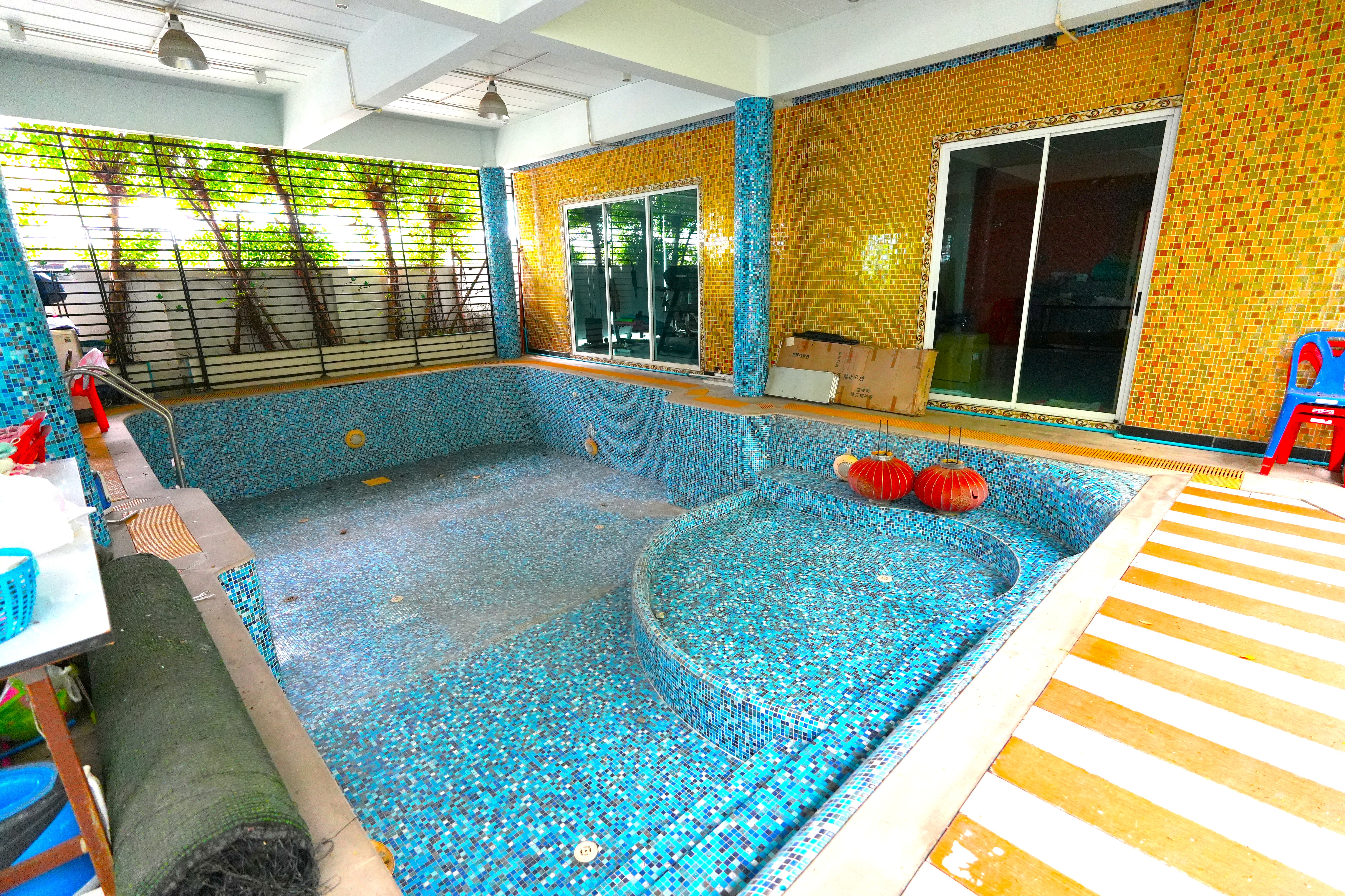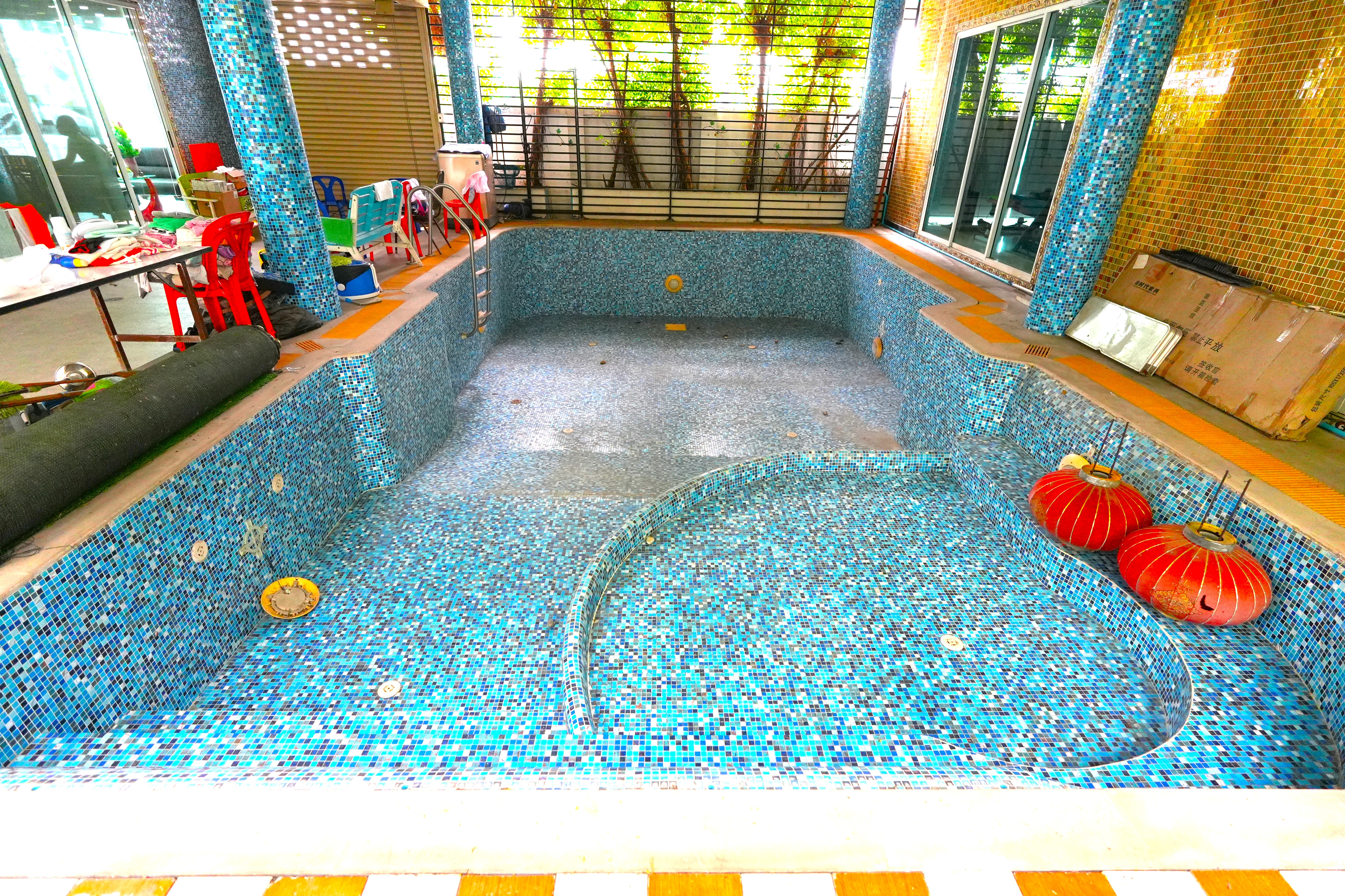 - พื้นที่ระหว่างตึก AและB เจ้าของต่อเติมสระว่ายน้ำในร่ม ทำหลังคาปิดอย่างดี และพื้นที่ส่วนกลางใช้ร่วมกัน