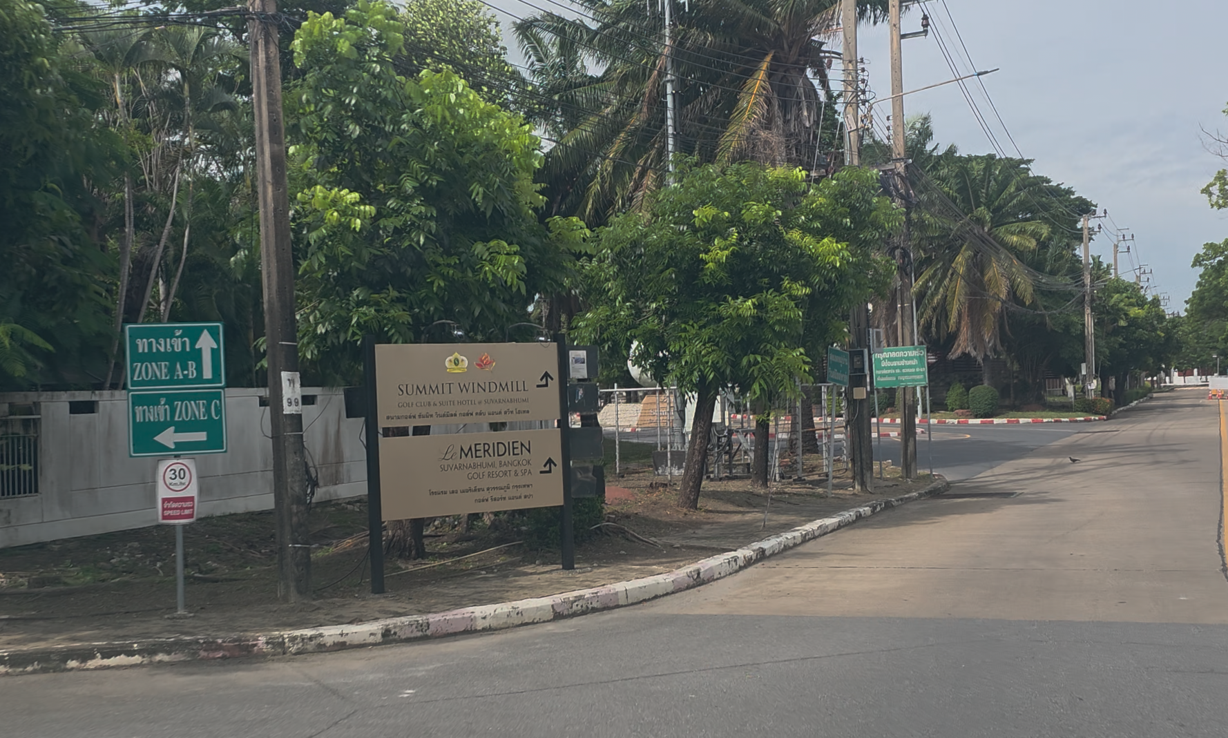 -ด้านหลังกำแพงของที่ดิน คือถนนทางเข้าสนามกอล์ฟซัมมิท