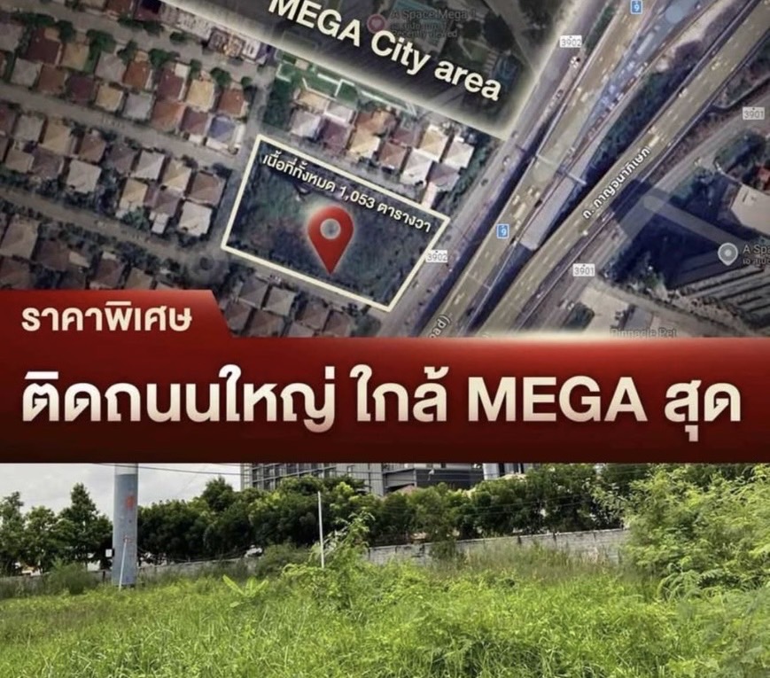 ขายที่ดิน ใกล้ Mega Bangna 2-2-53 ไร่ ติดถนนใหญ่ ทำเลทอง เดินทางสะดวก