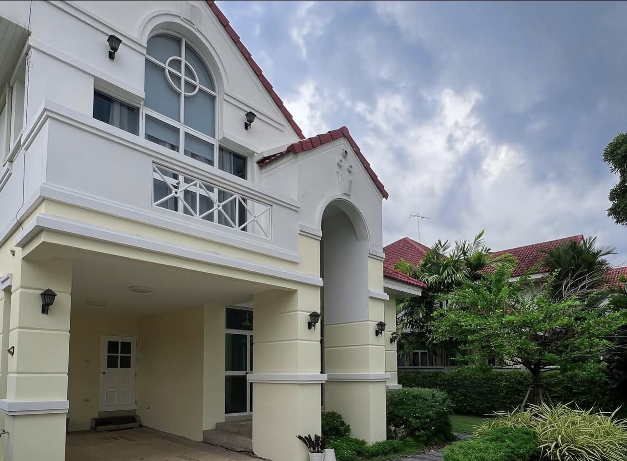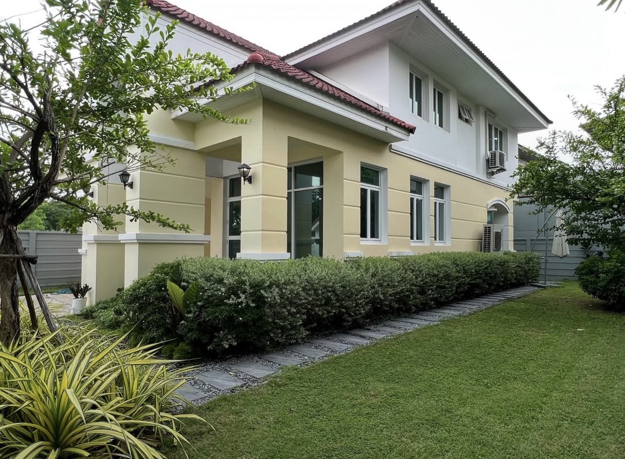 For Sale or Rent: 2-Story Detached House Baan Maet Village Chalermprakiet 90 sq.wa. Beautiful Garden Peaceful Atmosphere