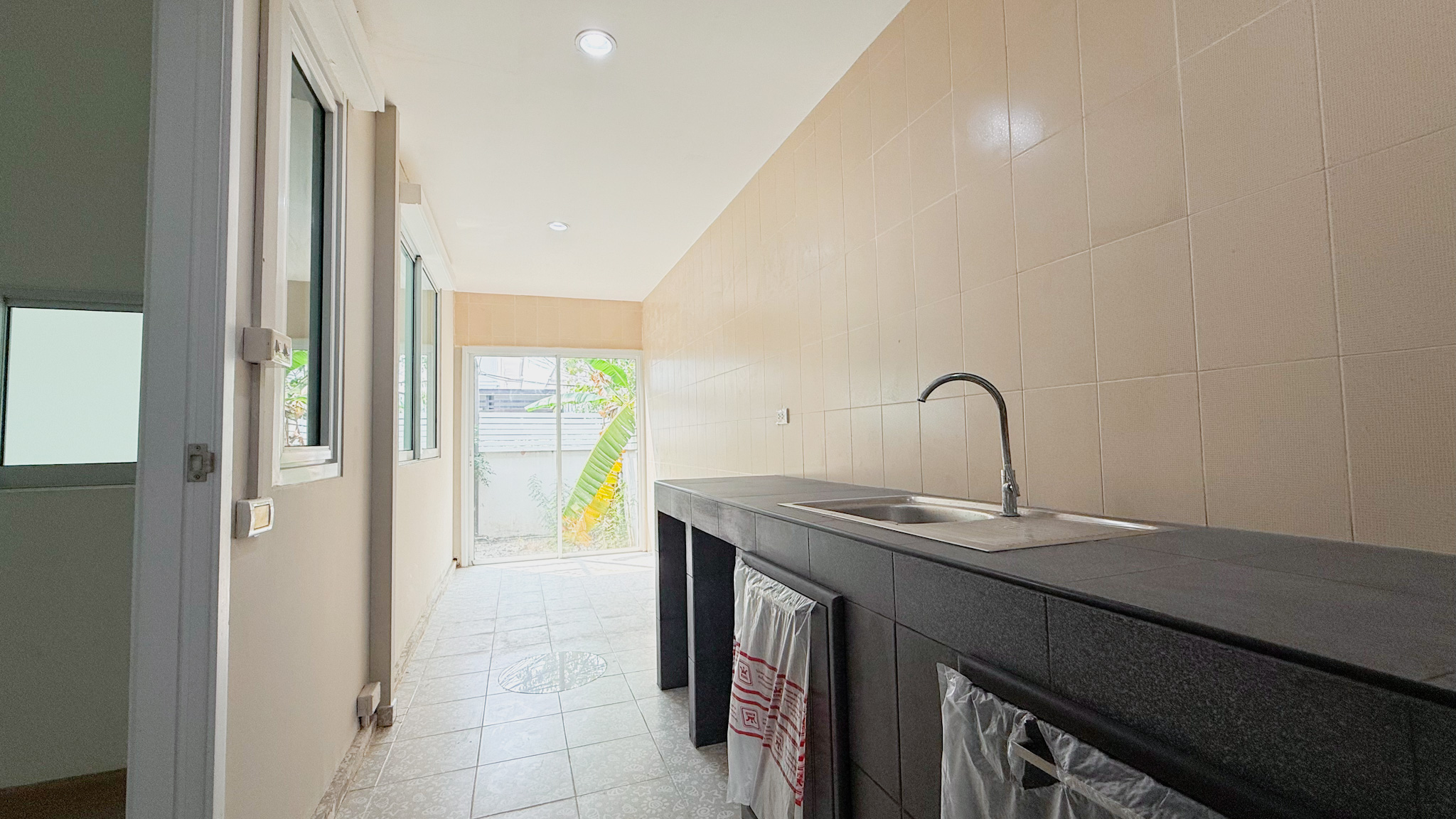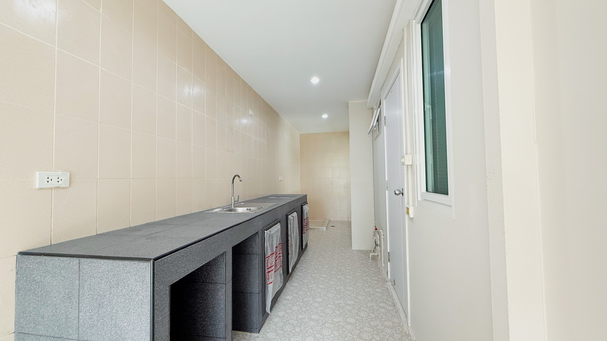 - ห้องครัวแยกไม่มีกลิ่นรบกวนห้องอื่น มีเคาเตอร์ครัว โซนซักล้างในร่ม