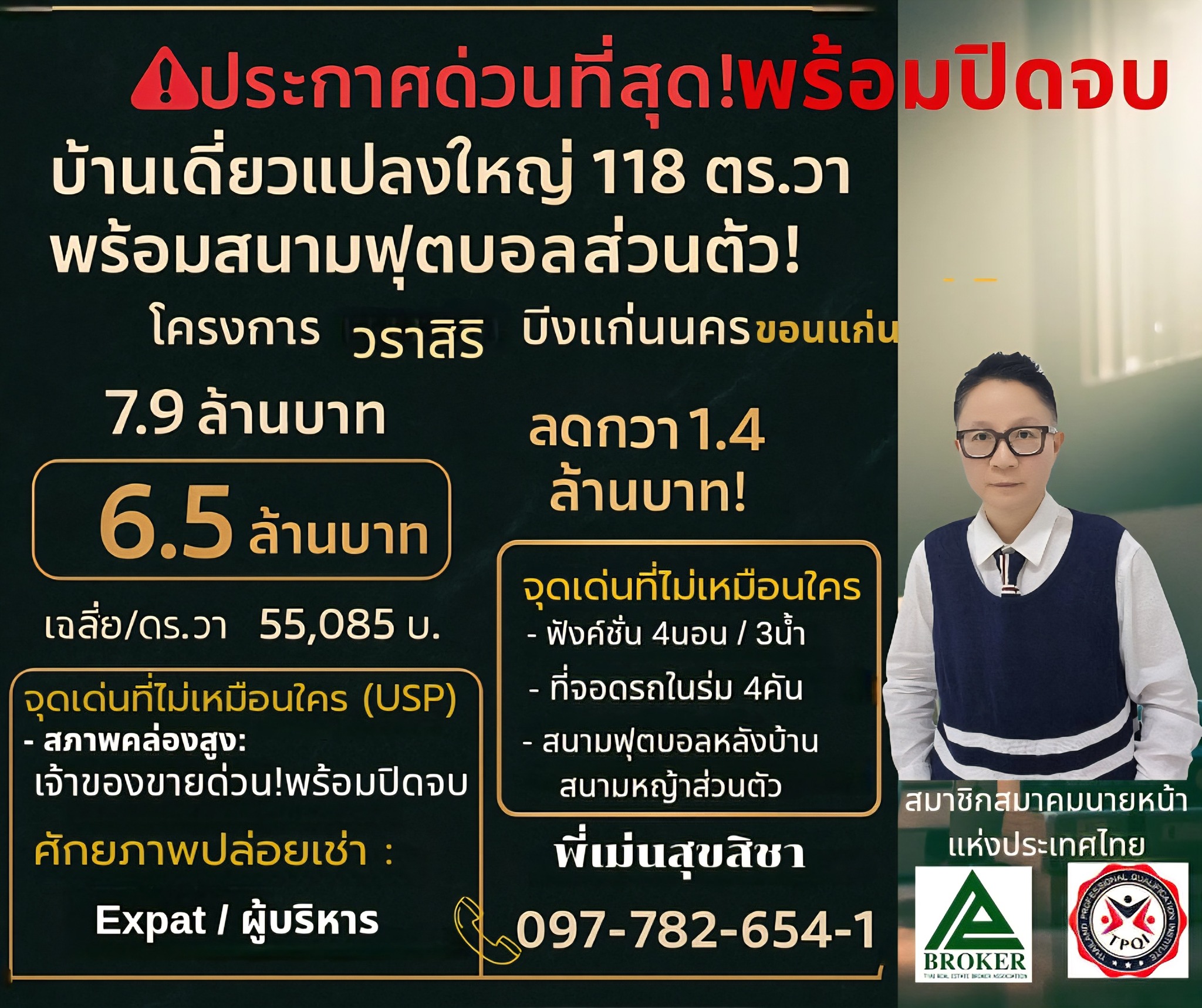 #บ้านขอนแก่น #บ้านเดี่ยวขอนแก่น #บึงแก่นนคร #บ้านมือสองขอนแก่น #วราสิริแก่นนคร #ขอนแก่น #ที่ดินขอนแก่น