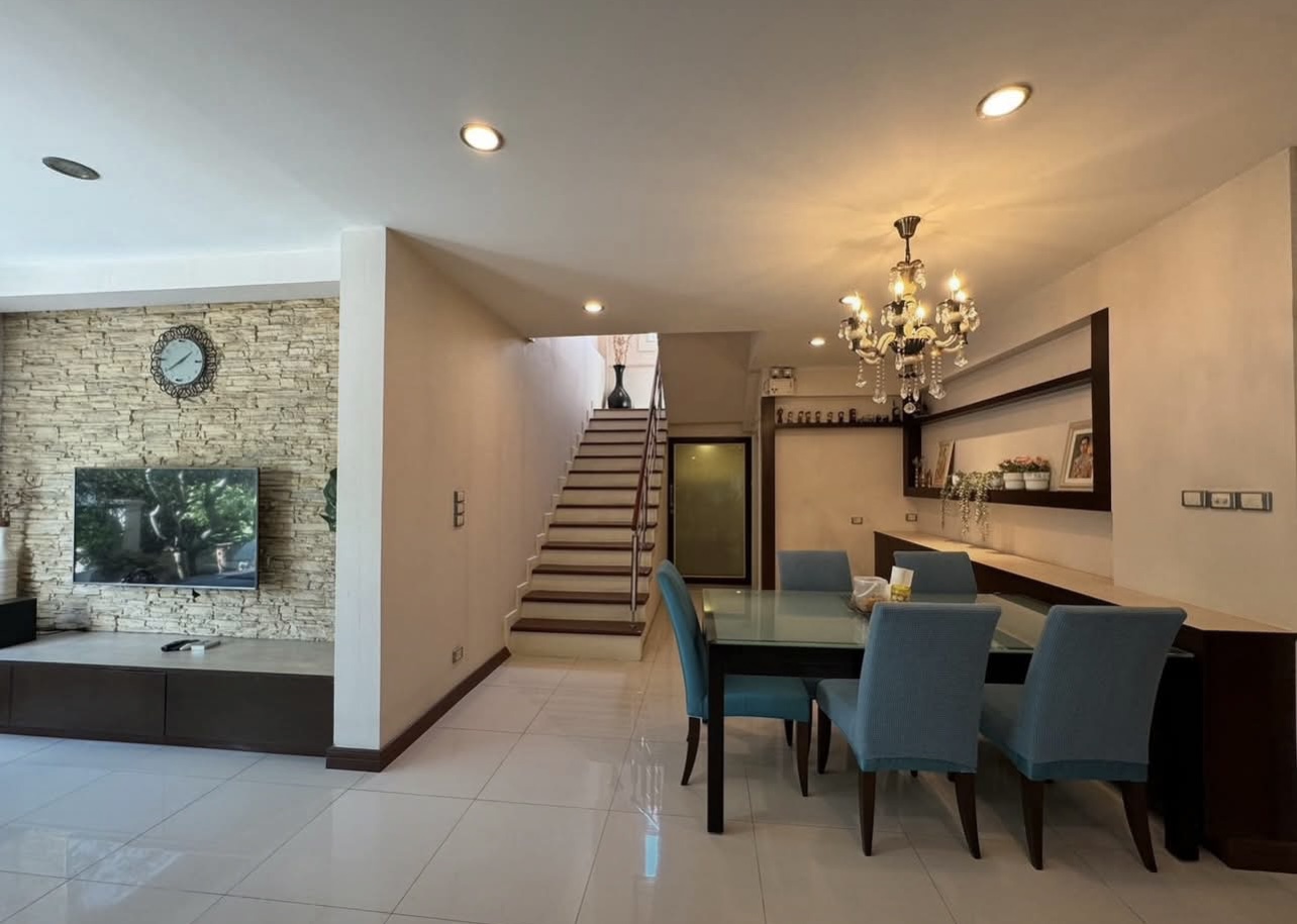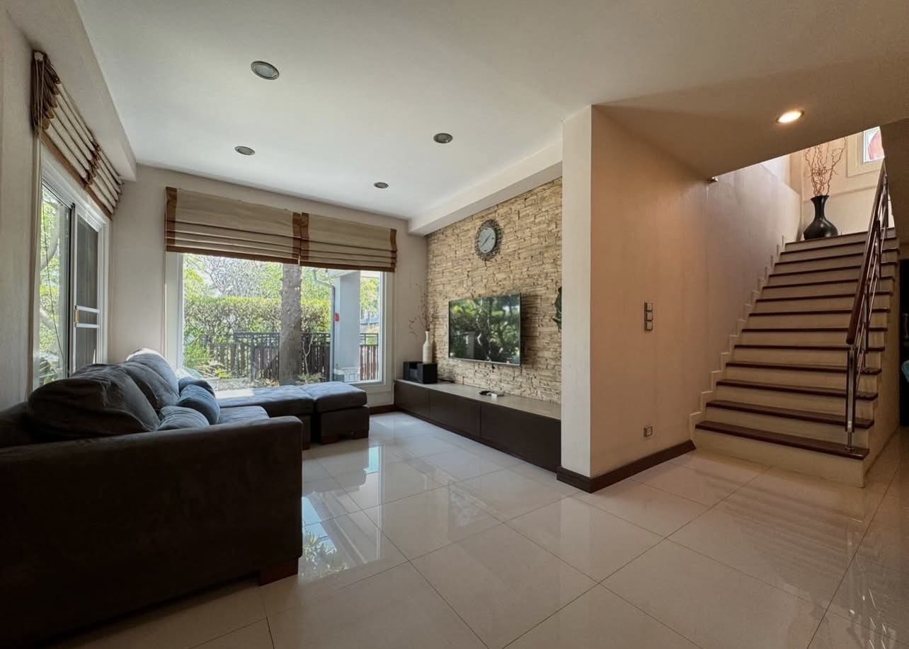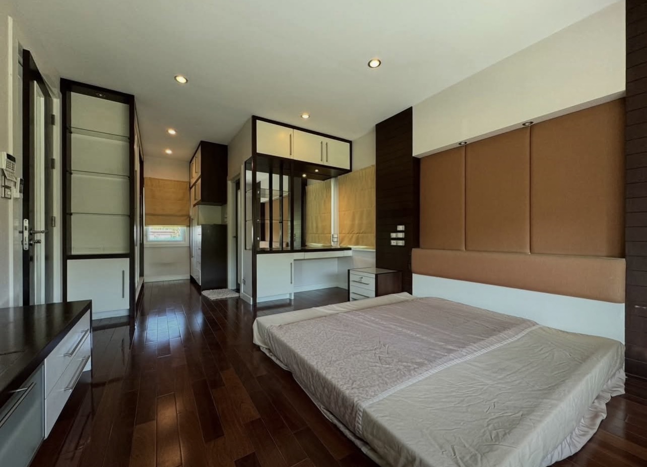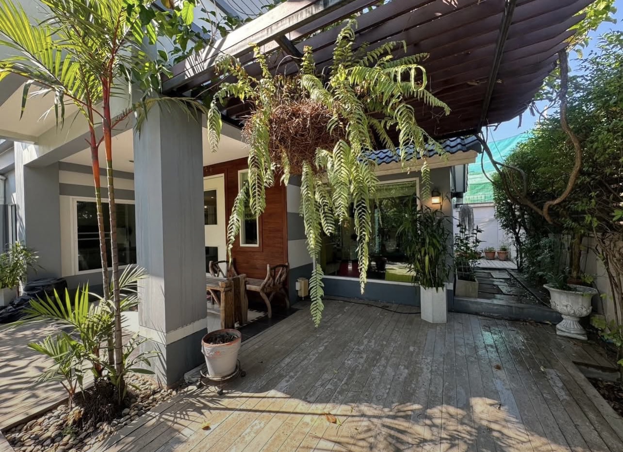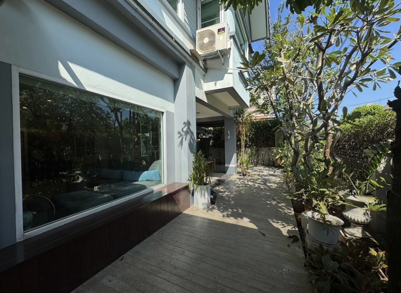 บ้านอยู่ตรงข้ามสวนหย่อม พักผ่อนร่มรื่น บิวต์อินทั้งหลัง ต่อเติมเต็ม ลงเสาเข็มแข็งแรง