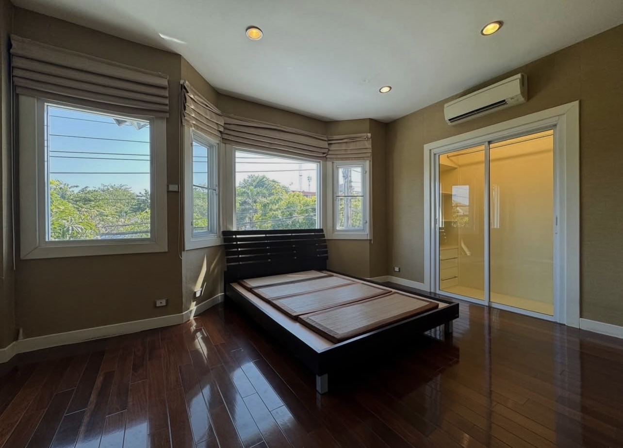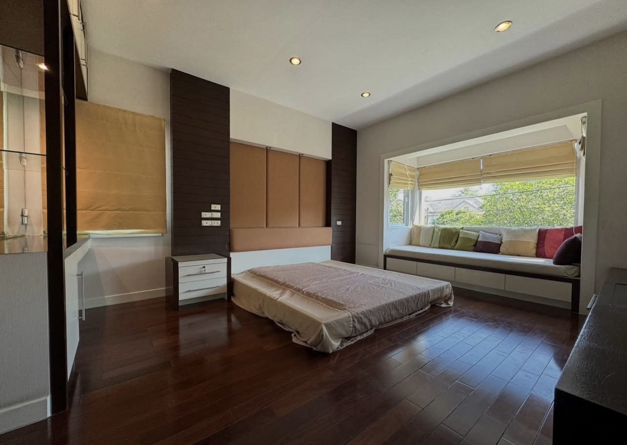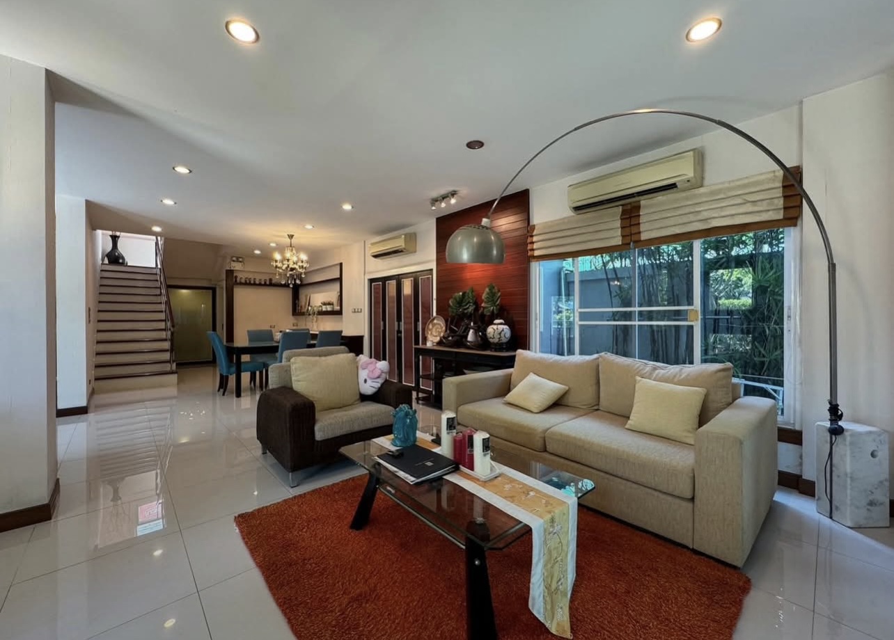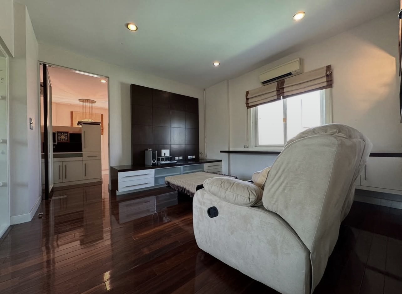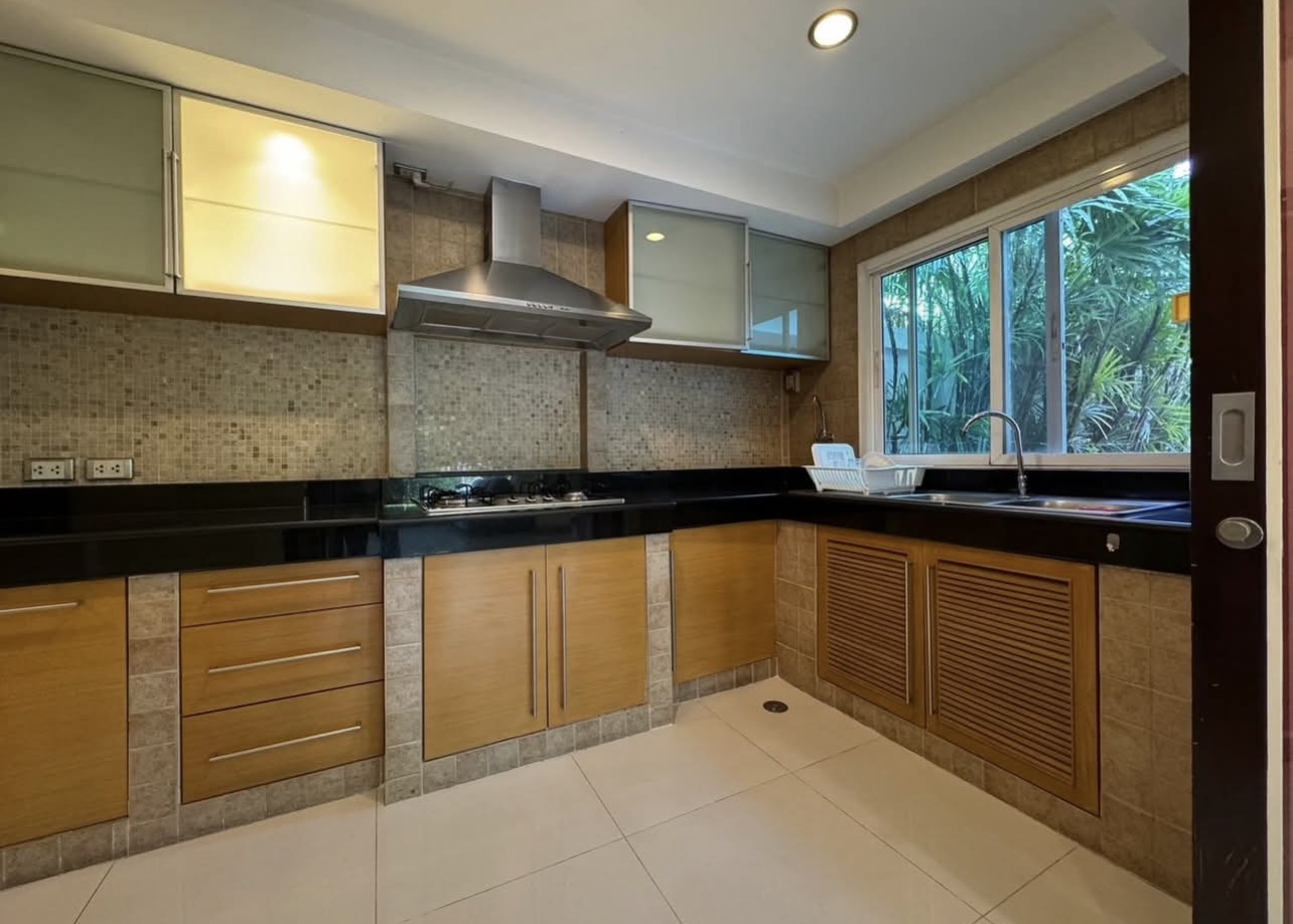 บ้านอยู่ตรงข้ามสวนหย่อม พักผ่อนร่มรื่น บิวต์อินทั้งหลัง ต่อเติมเต็ม ลงเสาเข็มแข็งแรง