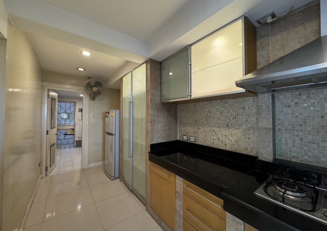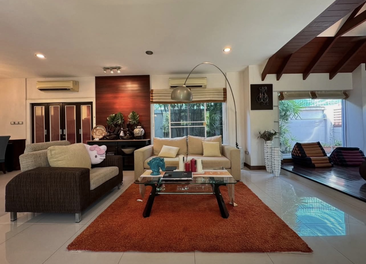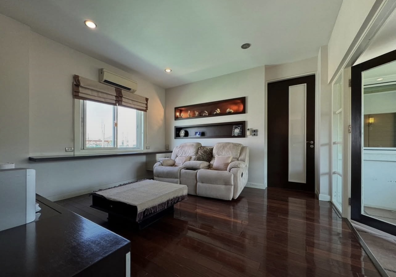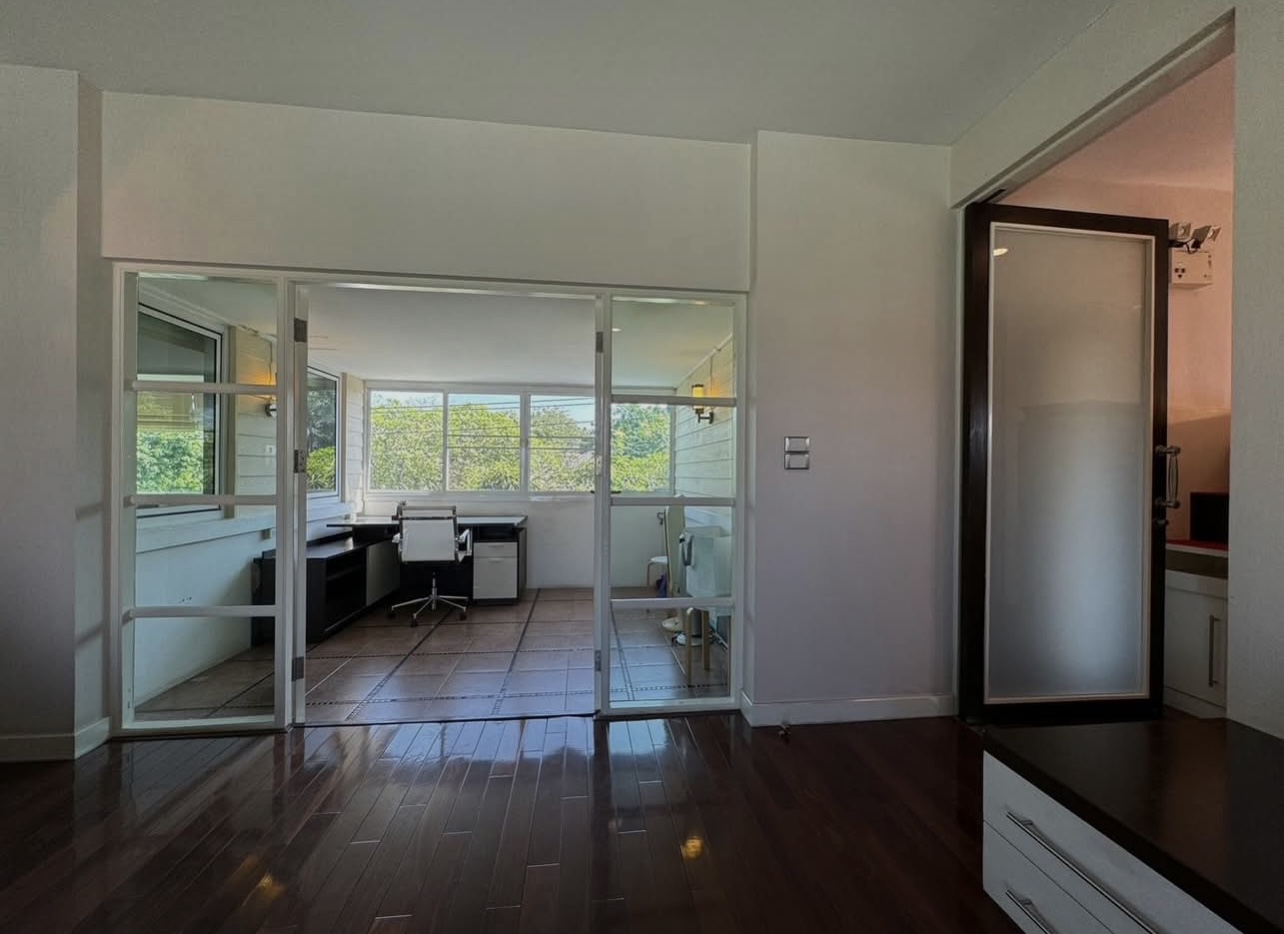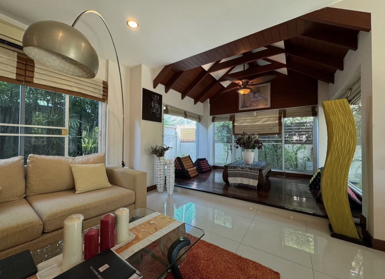บ้านอยู่ตรงข้ามสวนหย่อม พักผ่อนร่มรื่น บิวต์อินทั้งหลัง ต่อเติมเต็ม ลงเสาเข็มแข็งแรง