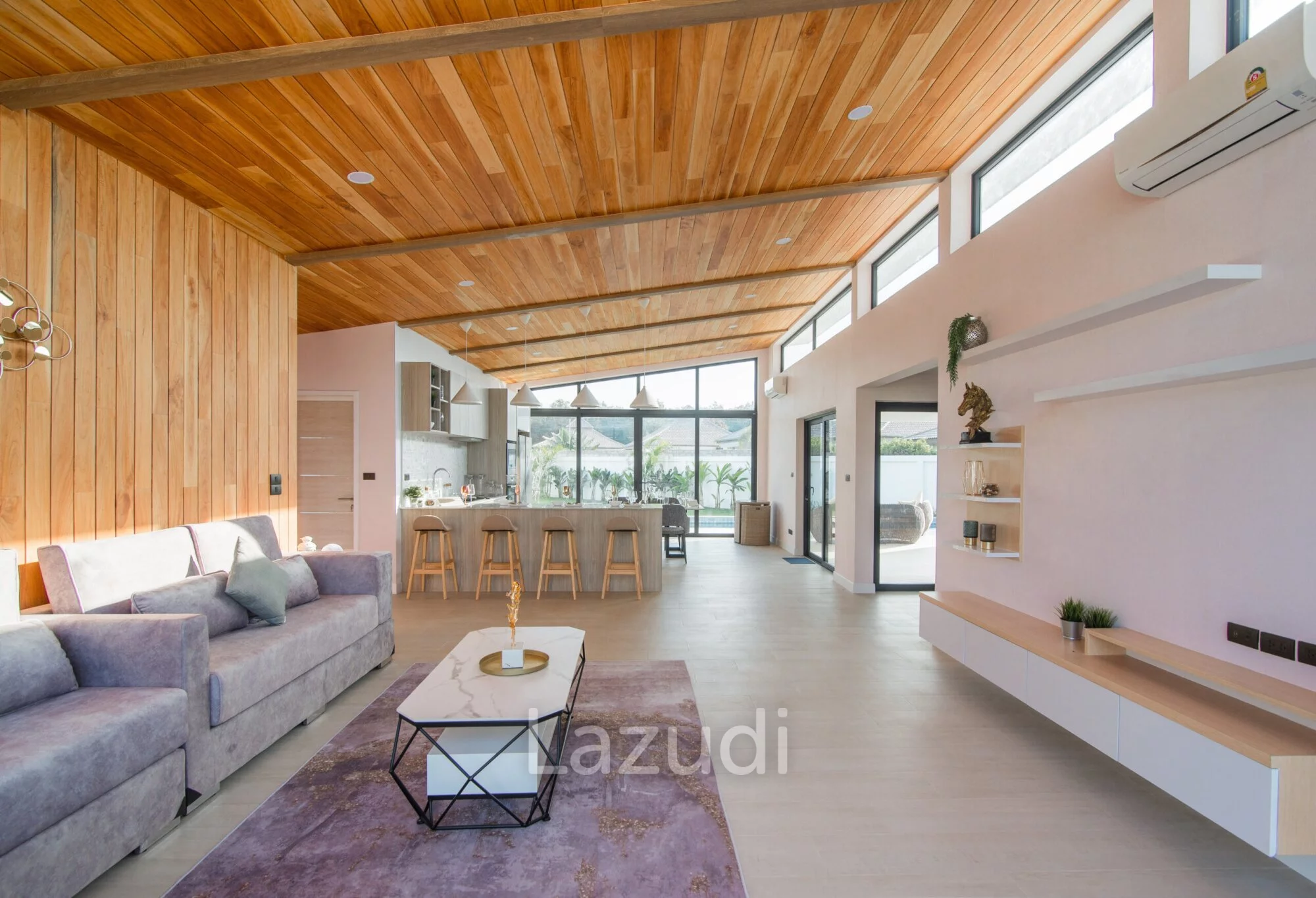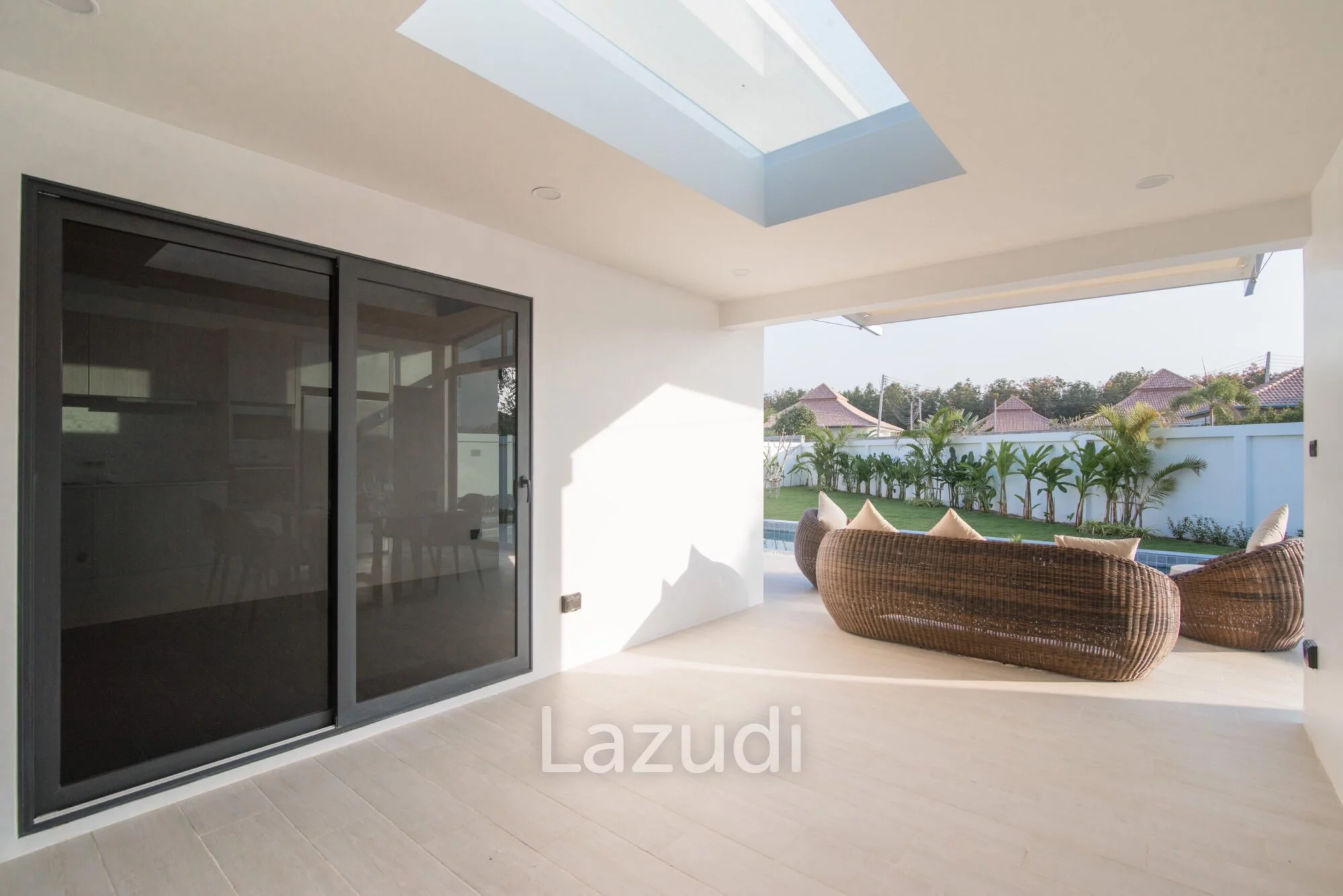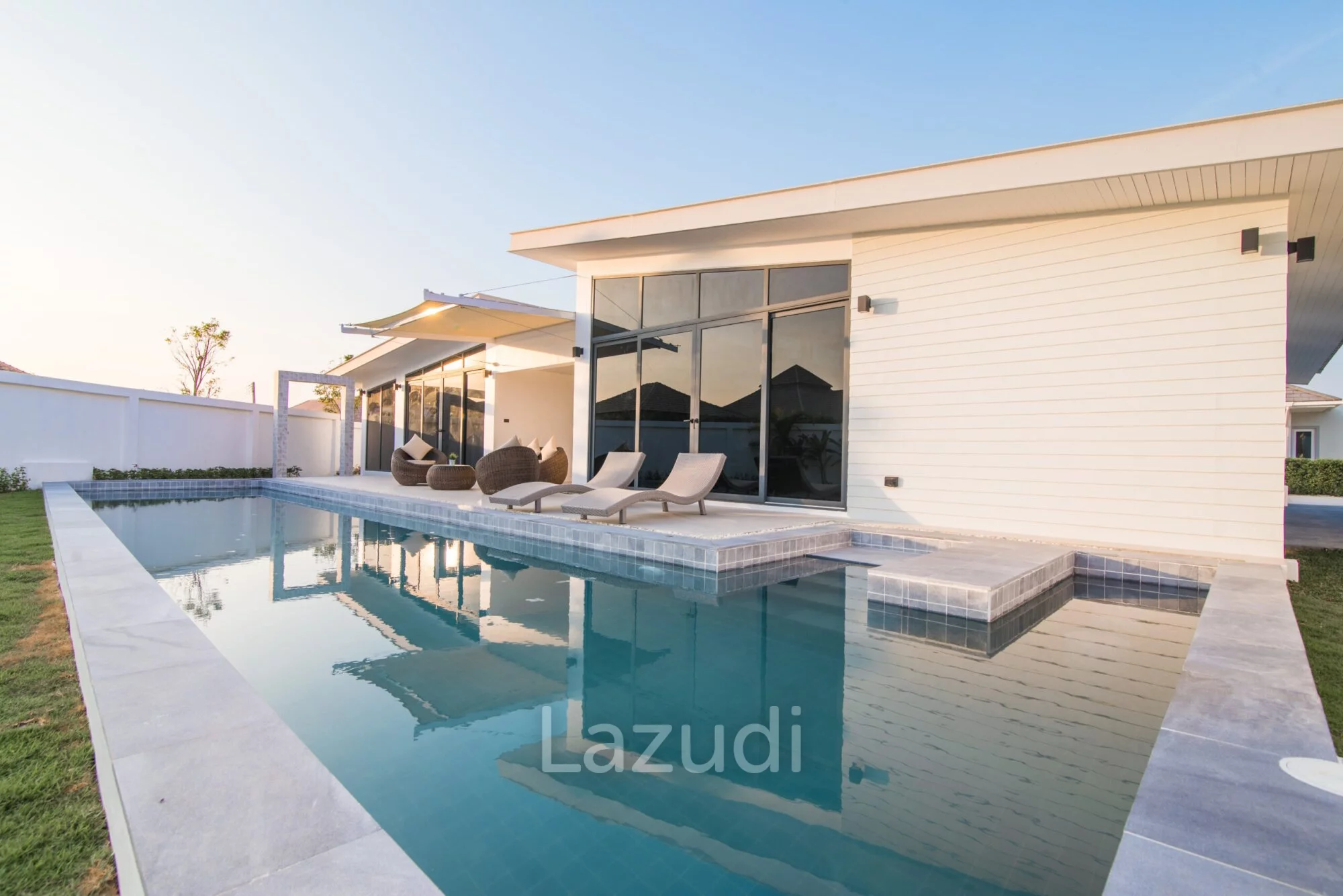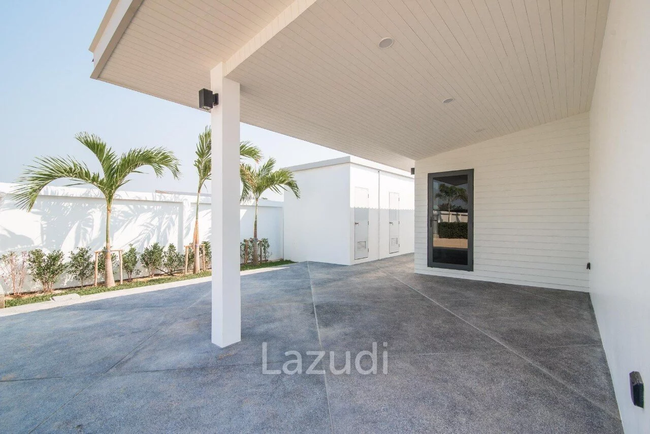 English: Experience contemporary luxury at its finest with this stunning 3-bedroom pool villa in the prestigious Moda Tempo project Hua Hin. This villa showcases a "Nice Design" with sleek architectural lines and a functional open-plan layout that emphasizes space and natural light. Every detail has been carefully curated to provide a comfortable yet sophisticated living experience. Located in the popular Thap Tai area this property offers a peaceful retreat with easy access to Hua Hin's world-class golf courses beaches and vibrant city center.
