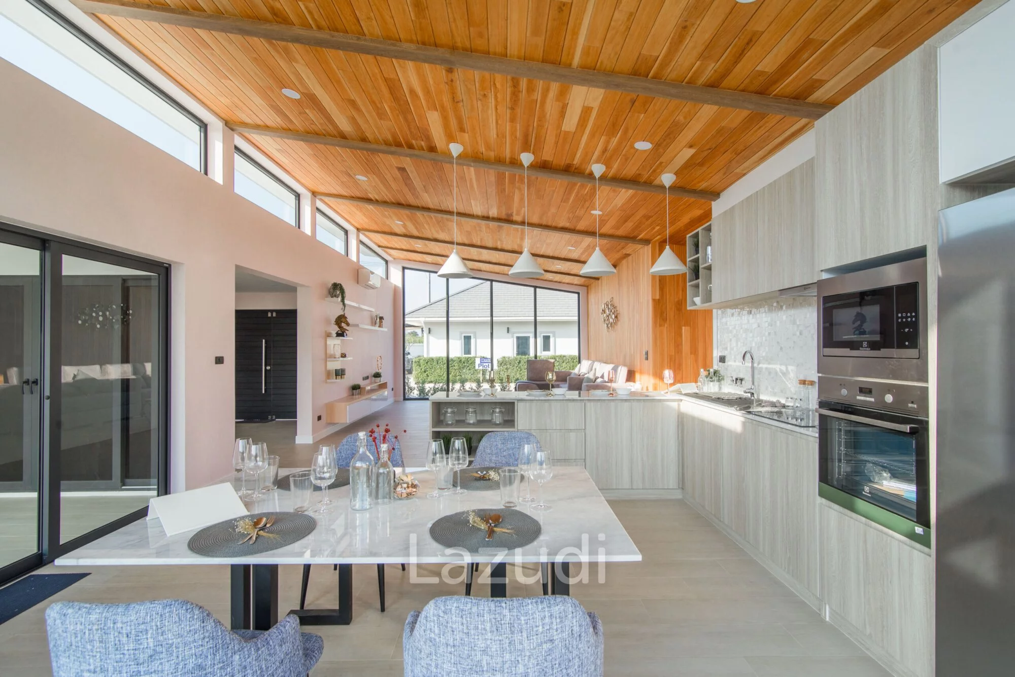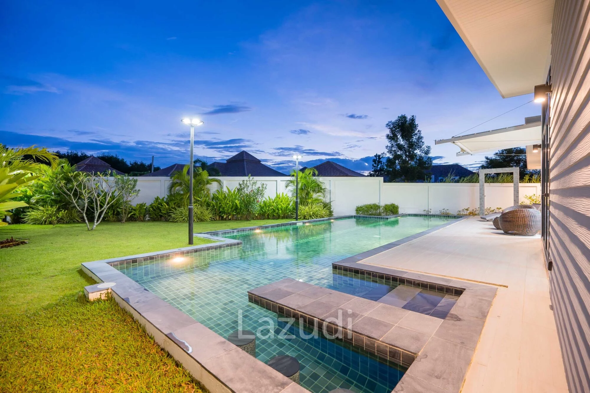 ภาษาไทย: พบกับนิยามใหม่ของการอยู่อาศัยที่เหนือระดับกับพูลวิลล่าสไตล์ Modern ทันสมัยในโครงการ Moda Tempo หัวหิน บ้านที่ออกแบบมาเพื่อตอบโจทย์ไลฟ์สไตล์คนรุ่นใหม่ด้วยเส้นสายที่เรียบง่ายแต่แฝงไปด้วยความหรูหรา พื้นที่ใช้สอยภายในถูกจัดสรรอย่างลงตัว เพดานสูงโปร่งทำให้บ้านดูสว่างและถ่ายเทอากาศได้ดี พร้อมสระว่ายน้ำส่วนตัวและระเบียงกว้างสำหรับพักผ่อน ตัวโครงการตั้งอยู่ในทำเลทับใต้ที่เงียบสงบ มอบความเป็นส่วนตัวสูงและเดินทางเข้าสู่ตัวเมืองหัวหินได้เพียงไม่กี่นาที