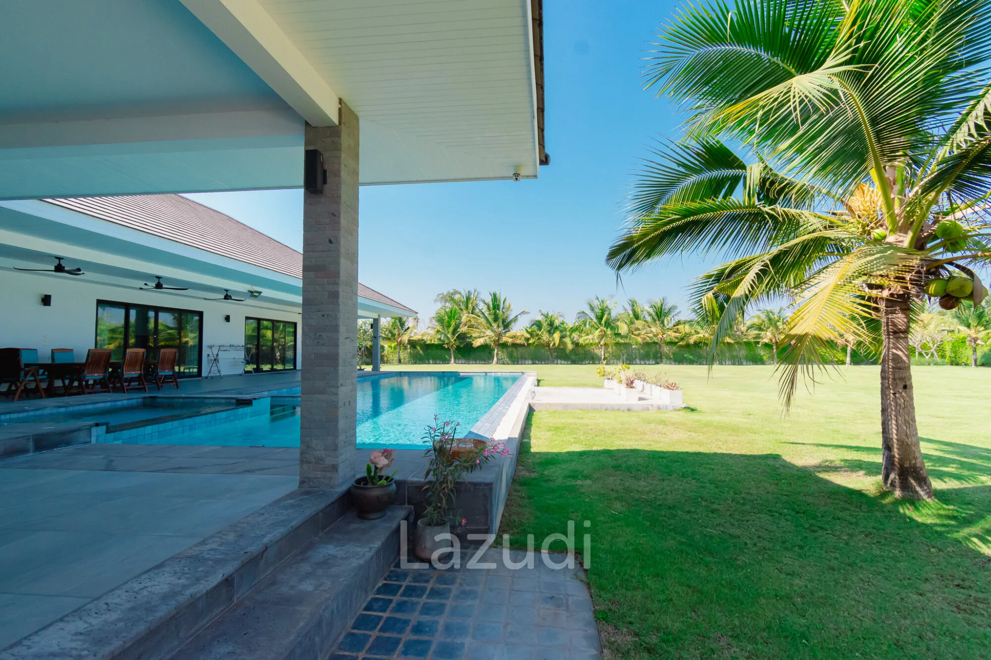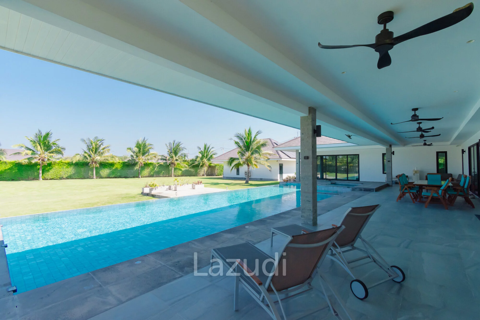 ภาษาไทย: พบกับบ้านในฝันที่ตอบโจทย์ครอบครัวใหญ่ Parkland Villa พูลวิลล่าหรูดีไซน์สวยที่มาพร้อมความกว้างขวางถึง 4 ห้องนอน ตัวบ้านถูกออกแบบมาให้มีความโอ่อ่า เพดานสูง และเปิดรับแสงธรรมชาติอย่างเต็มที่ ไฮไลท์สำคัญคือพื้นที่พักผ่อนริมสระว่ายน้ำส่วนตัวที่กว้างขวาง เหมาะสำหรับการจัดปาร์ตี้หรือพักผ่อนกับครอบครัว ตั้งอยู่ในโซนหินเหล็กไฟที่เงียบสงบ แต่ยังคงความสะดวกในการเดินทางไปสนามกอล์ฟแบล็คเมาท์เทนและใจกลางเมืองหัวหิน เป็นวิลล่าที่ผสมผสานความหรูหราและความอบอุ่นเข้าด้วยกันอย่างลงตัว