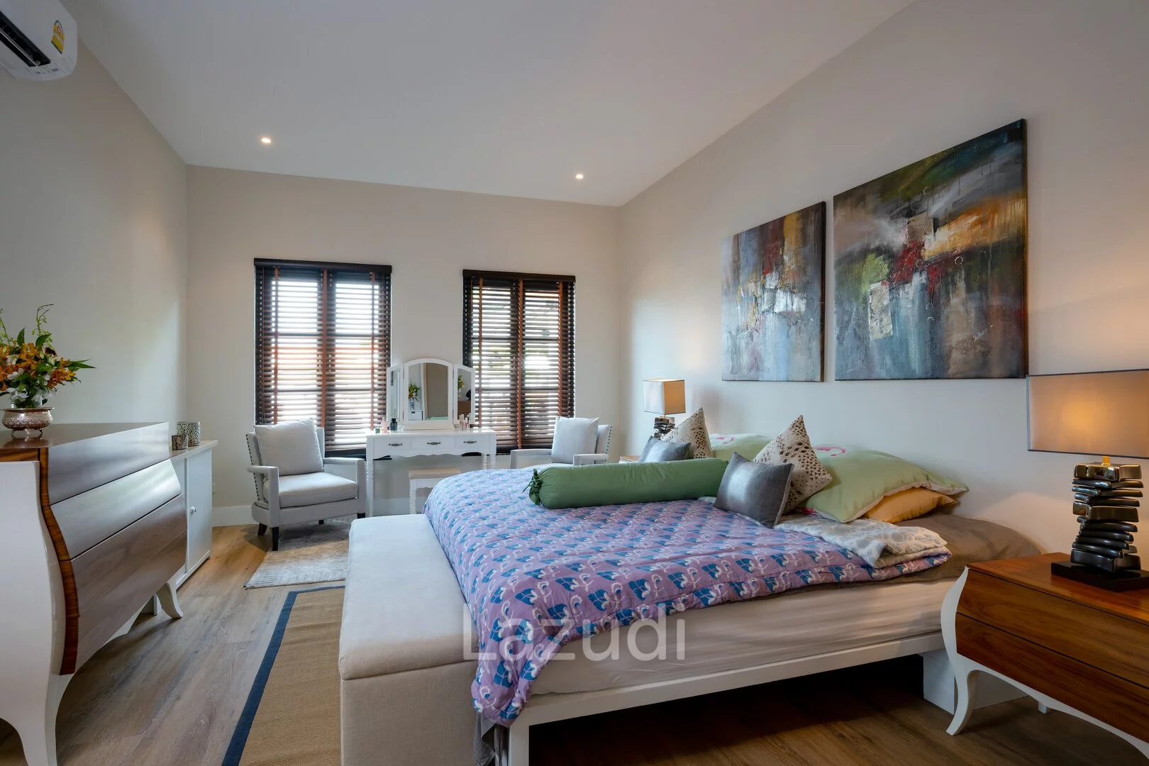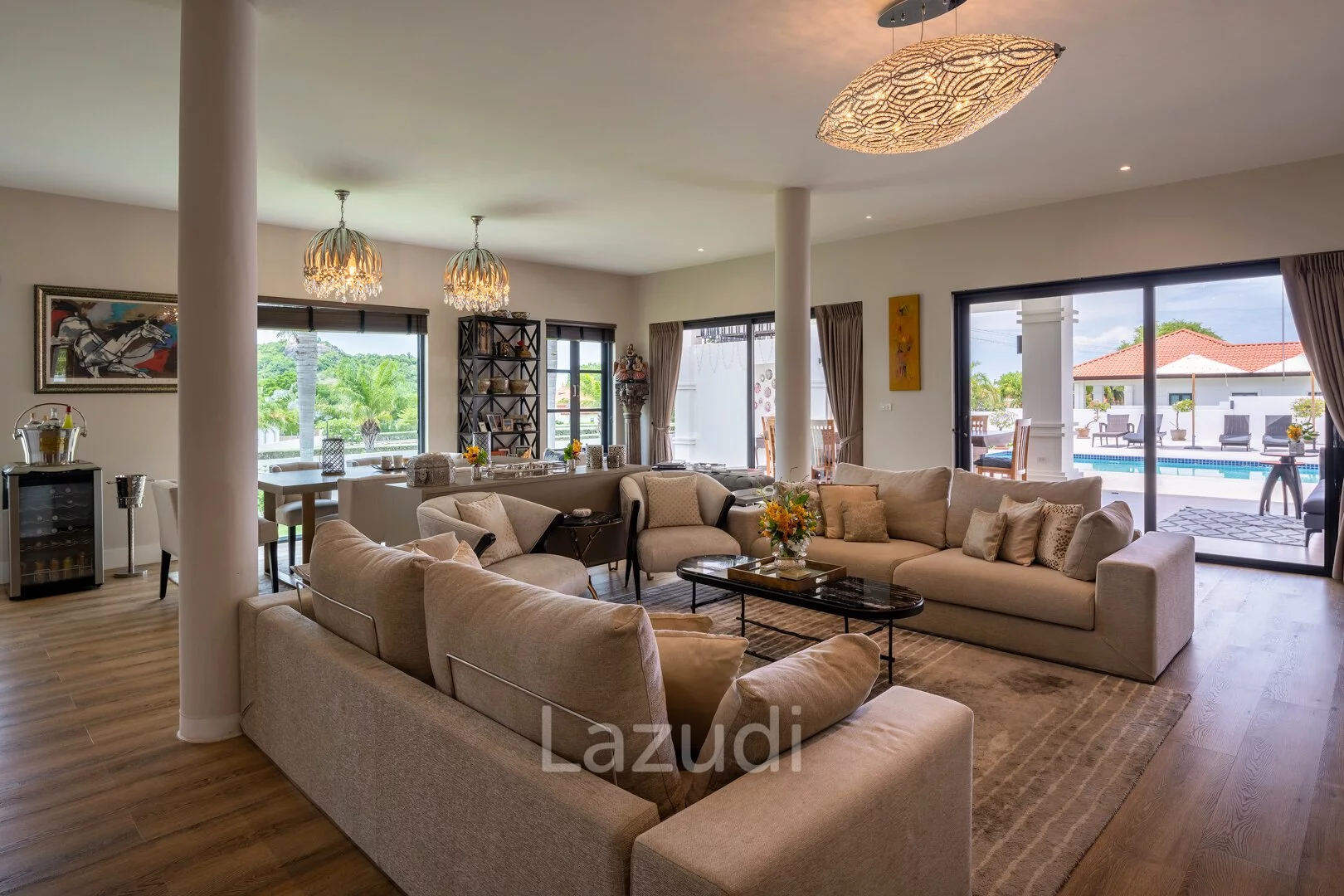 ภาษาไทย: สัมผัสเอกลักษณ์แห่งการพักผ่อนระดับเวิลด์คลาสกับพูลวิลล่าหรูสไตล์บาหลี (Bali Style) ในโครงการระดับไฮเอนด์ Banyan Residences หัวหิน วิลล่าหลังนี้ตั้งอยู่บนที่ดินผืนใหญ่เป็นพิเศษ มอบความเป็นส่วนตัวสูงสุดและทัศนียภาพภูเขาแบบพาโนรามา การออกแบบเน้นความกลมกลืนกับธรรมชาติ พื้นที่ใช้สอยภายในกว้างขวางโอ่อ่า เพดานสูง และเลือกใช้วัสดุเกรดพรีเมียมทุกตารางนิ้ว พร้อมสระว่ายน้ำส่วนตัวขนาดใหญ่และศาลาพักผ่อนริมสระ ท่ามกลางสวนเขตร้อนที่ตกแต่งอย่างสวยงาม เหมาะสำหรับผู้ที่ต้องการที่พำนักอันหรูหราและสงบเงียบในทำเลที่ดีที่สุดของหัวหิน