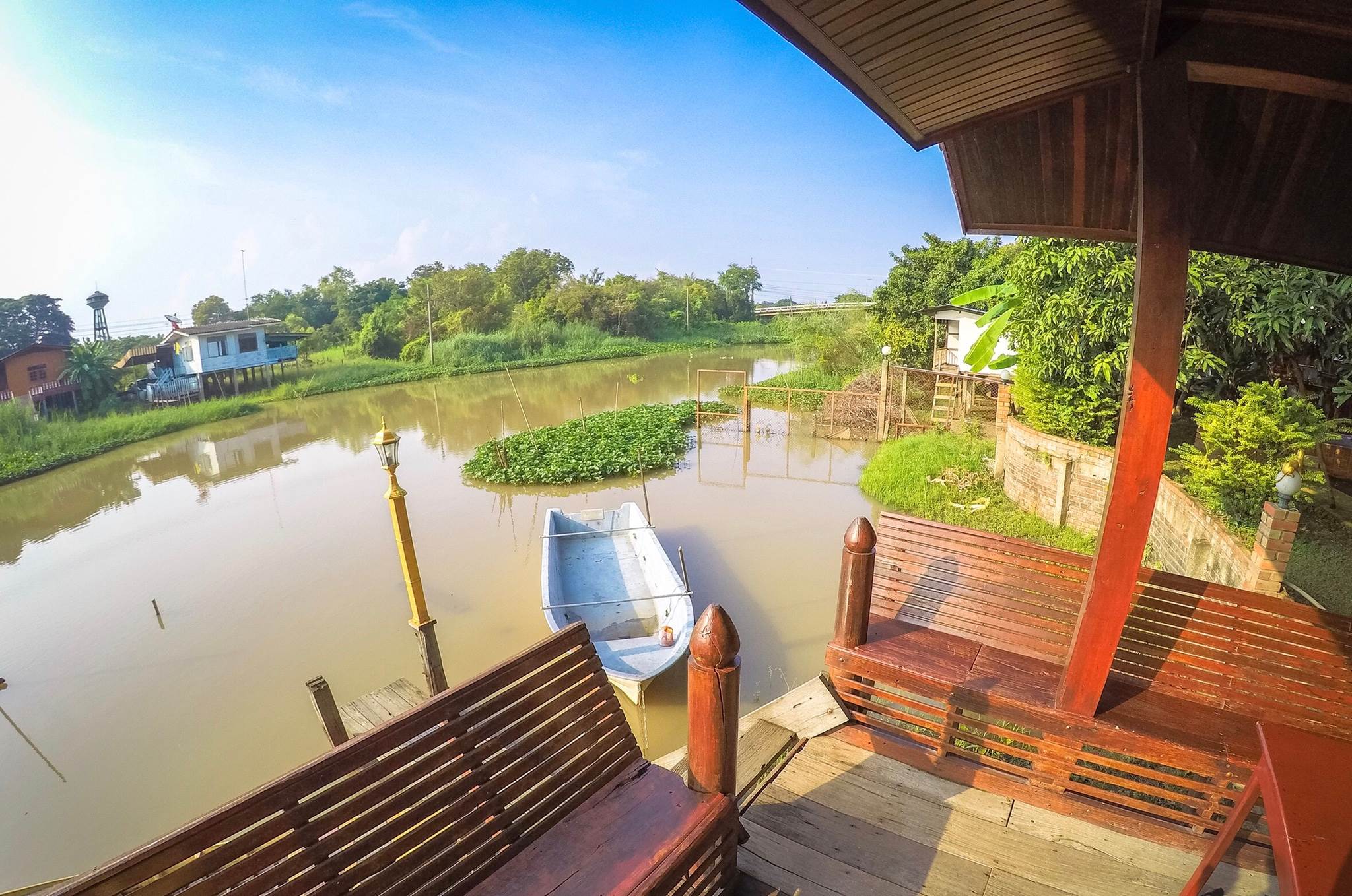 - ริมน้ำมีศาลาไม้สักทองแท้ ที่นั่งรองรับได้ 10 คน + -