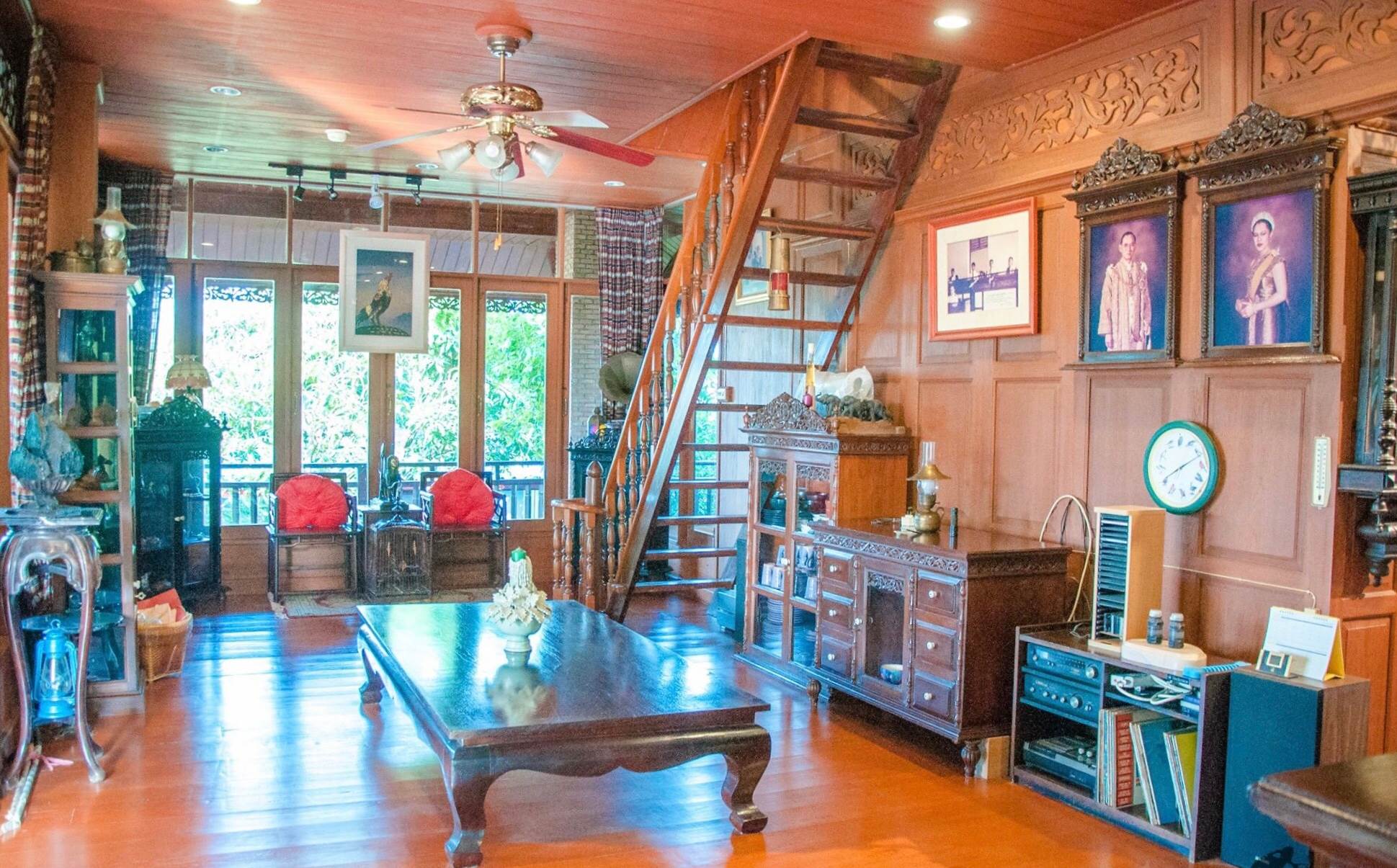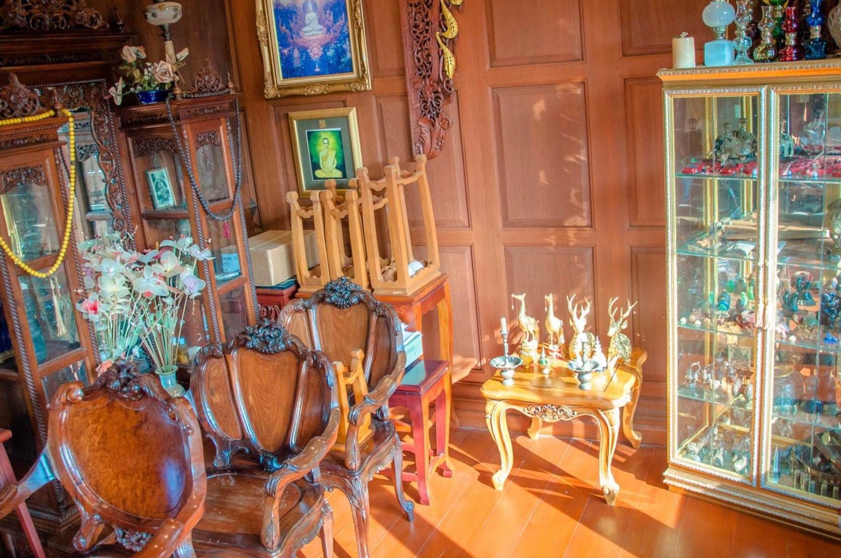 - หอพระ.. เป็นไม้สักทองทั้งหลัง ชั้นสองทางเดินเชื่อมติดกับตัวบ้านหลัก สำหรับบูชาพระ มีองค์พระ 188 องค์ +- อายุองค์พระเฉลี่ย 25 ปี + โต๊ะหมู่พระ เป็นไม้พยุง แท้ๆ